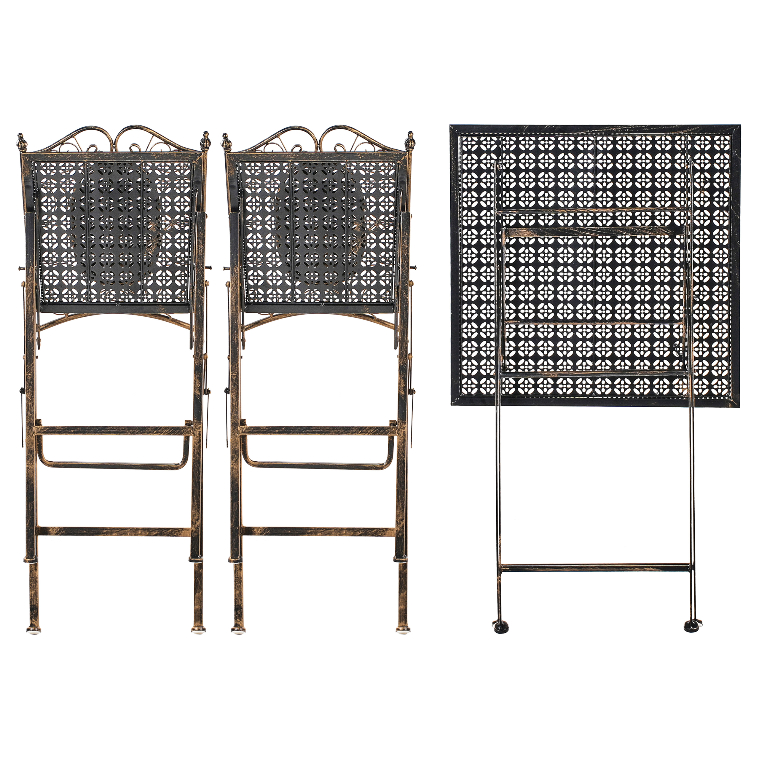 Kokoontaitettava puutarhan baariryhmä kahdelle hengelle. Tuo parvekkeellesi tai puutarhaasi romanttista tunnelmaa ja nauti auringosta tämän ihastuttavan, vintage-tyylin inspiroiman baariryhmän ääressä. Laadukkaasta ja kestävästä jauhemaalatusta raudasta valmistetut kalusteet kestävät vuosien käytön. Kokoontaitettavan ominaisuutensa ansiosta baaripöytä ja -tuolit on helppo taittaa kasaan varastointia varten ja siirtää paikasta toiseen. Ainutlaatuinen kuviointi, avoin muotoilu ja kulunut viimeistely saavat ulkobaariryhmän sopimaan moniin erilaisiin ulkosisustuksiin, tuoden niihin retrohenkeä.