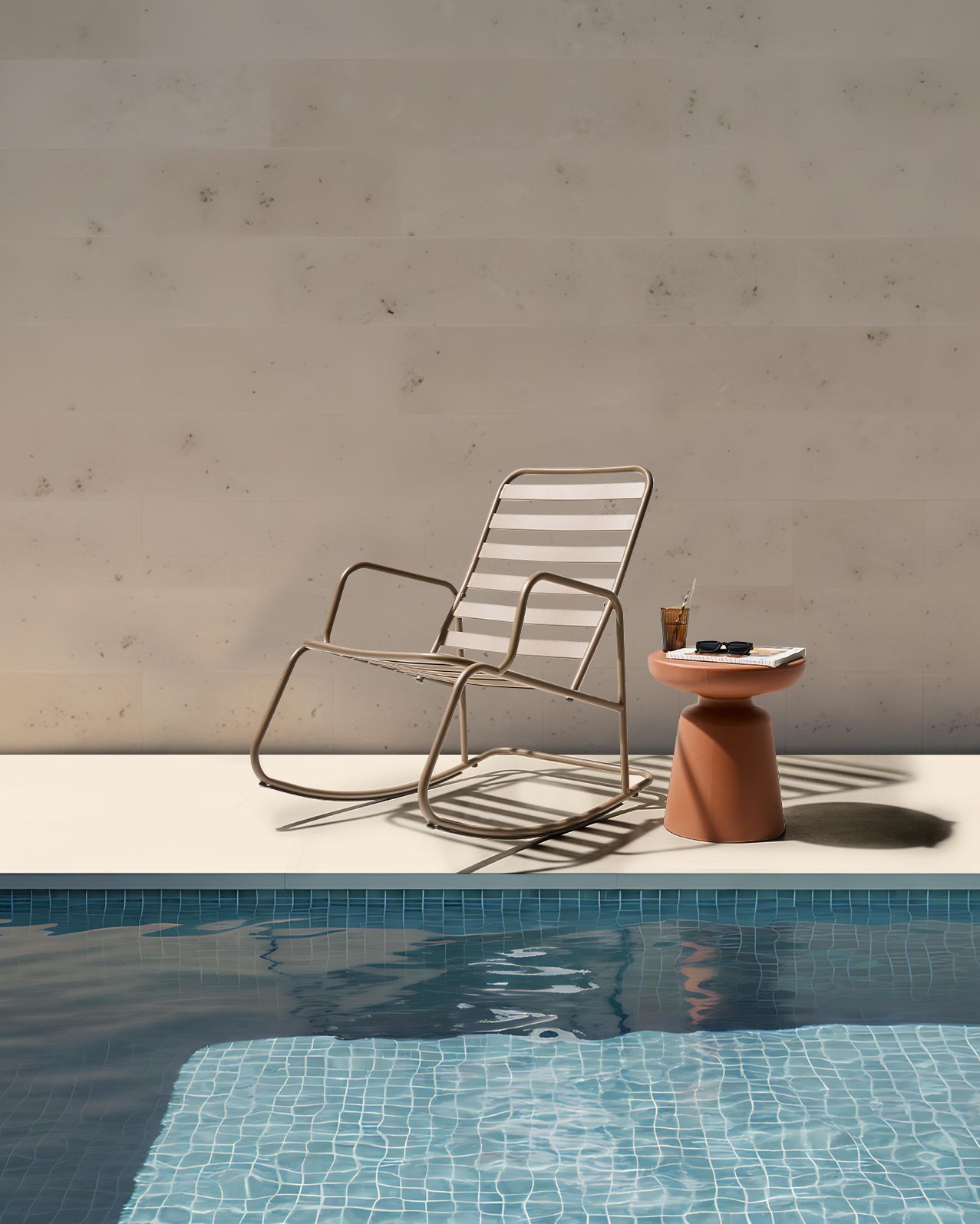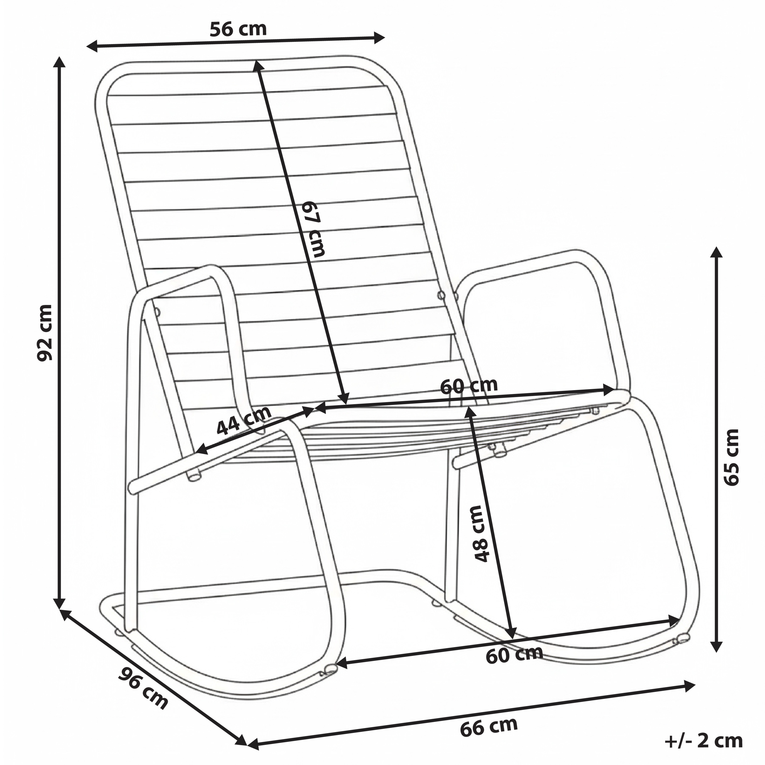 Moderni puutarhan keinutuoli. Tämä elegantti, alumiinista valmistettu ulkokeinutuoli yhdistää nykyaikaisen muotoilun ja kestävän mukavuuden. Kevyt mutta kestävä runko kestää ruostetta ja erilaisia sääolosuhteita, mikä tekee siitä täydellisen rentoutumispaikan terassille tai uima-altaan läheisyyteen. Keinutuolin puhtaat linjat ja neutraali viimeistely täydentävät vaivattomasti mitä tahansa modernia ulkotilaa. Se tarjoaa pehmeän, lempeän keinumisen, jolloin rentoutumisesta voi nauttia tyylillä.