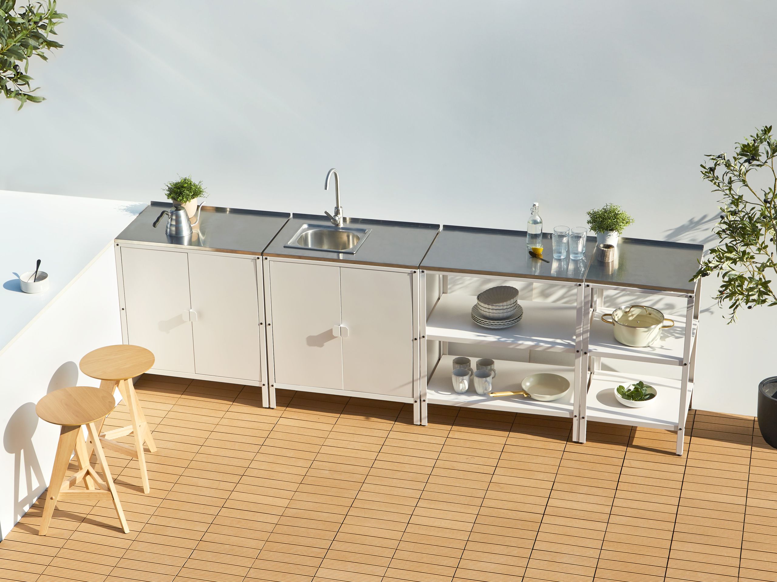 Lisätiedot: Huomaathan, että ulkokeittiö on sijoitettava kovalle ja tasaiselle alustalle (esim. sementti- tai laattalattialle), jossa on pääsy vesijohtoverkostoon.
