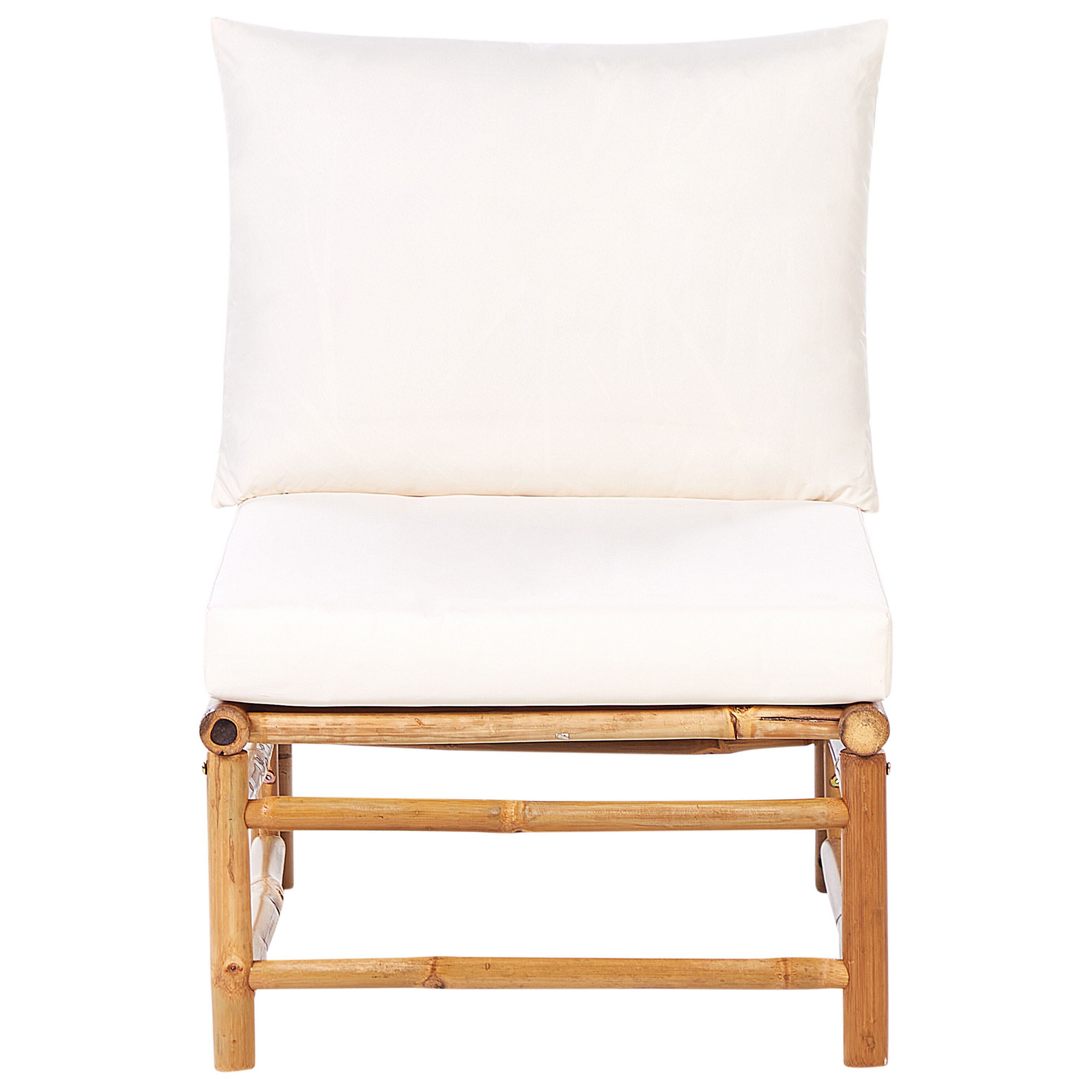 Bambu sohvamoduuli puutarhaan. Luo täydellinen ulkotila tällä bambusta valmistetulla keskimoduulilla, jolla voit täydentää ulkosohvaryhmää oman maun mukaan. Monipuolisessa moduuliosassa yhdistyy boho-tyylin rentous, bambupuun kestävyys ja mukavat polyesteripehmusteet, joissa on irrotettavat päälliset vaivattoman ylläpidon varmistamiseksi. Modulaarinen muotoilu sopii erinomaisesti puutarhaan ja terassille, jolla päivität ulkotilan ilmettä käden käänteessä.
