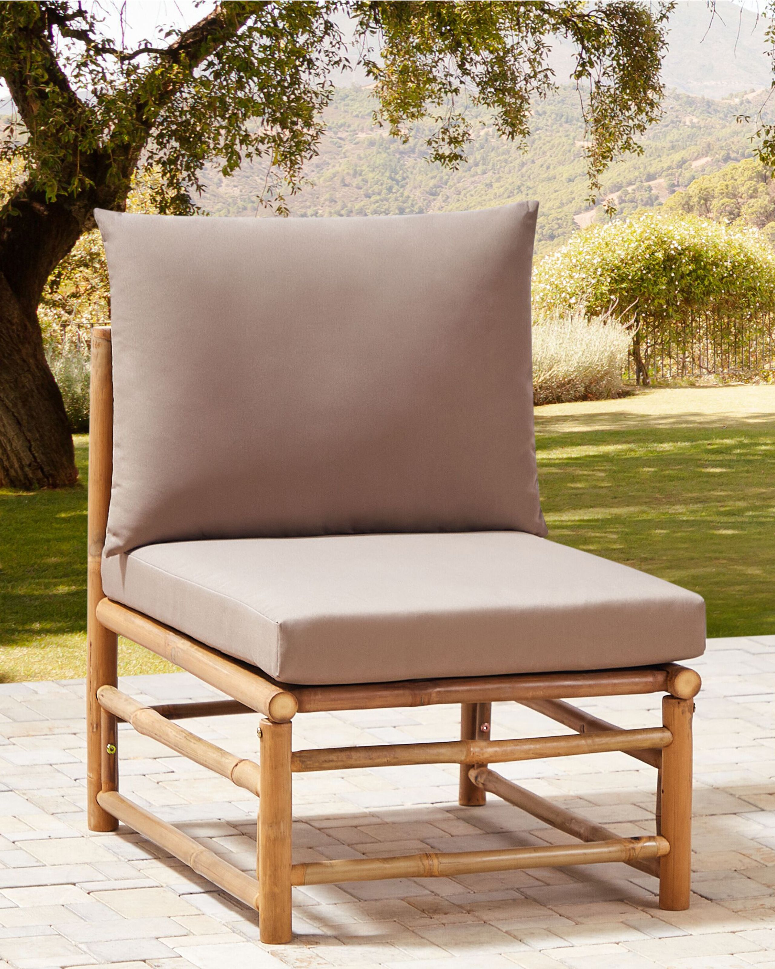 Bambu sohvamoduuli puutarhaan. Luo täydellinen ulkotila tällä bambusta valmistetulla keskimoduulilla, jolla voit täydentää ulkosohvaryhmää oman maun mukaan. Monipuolisessa moduuliosassa yhdistyy boho-tyylin rentous, bambupuun kestävyys ja mukavat polyesteripehmusteet, joissa on irrotettavat päälliset vaivattoman ylläpidon varmistamiseksi. Modulaarinen muotoilu sopii erinomaisesti puutarhaan ja terassille, jolla päivität ulkotilan ilmettä käden käänteessä.