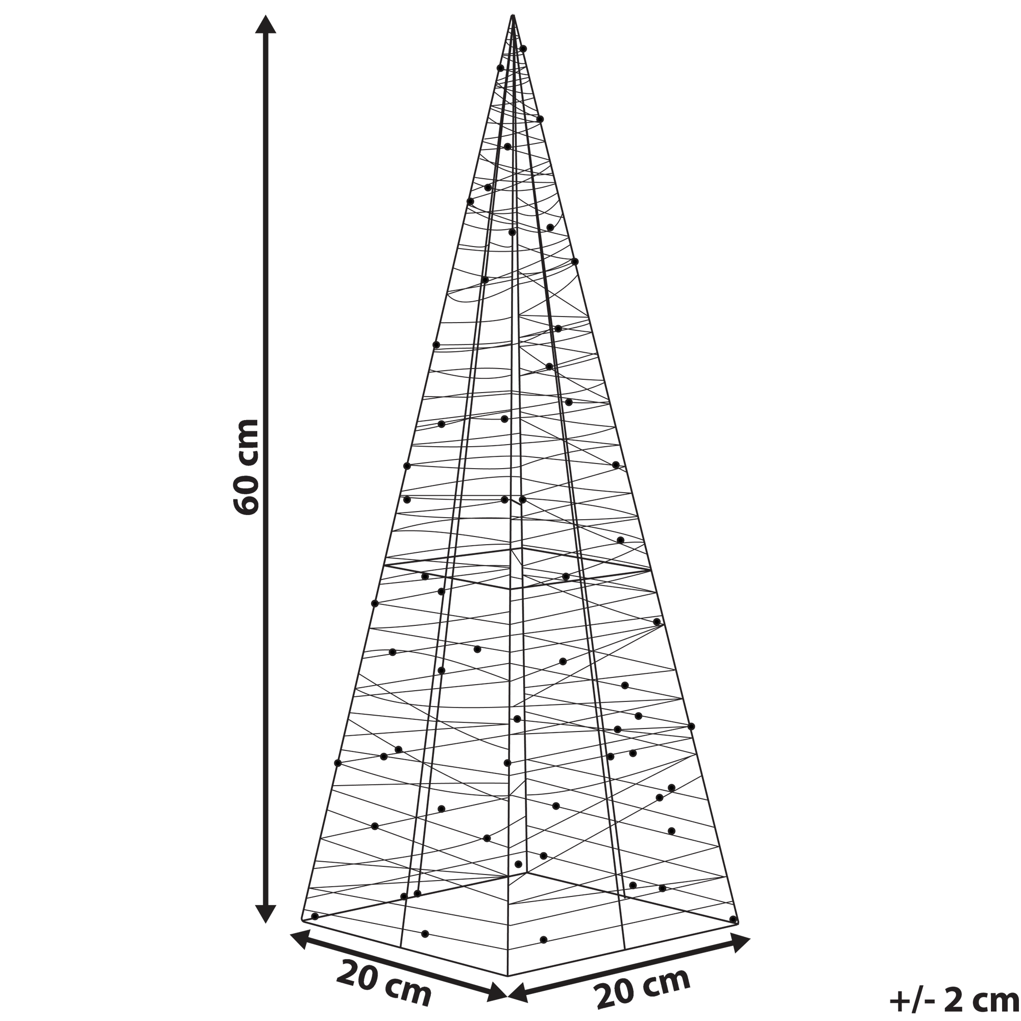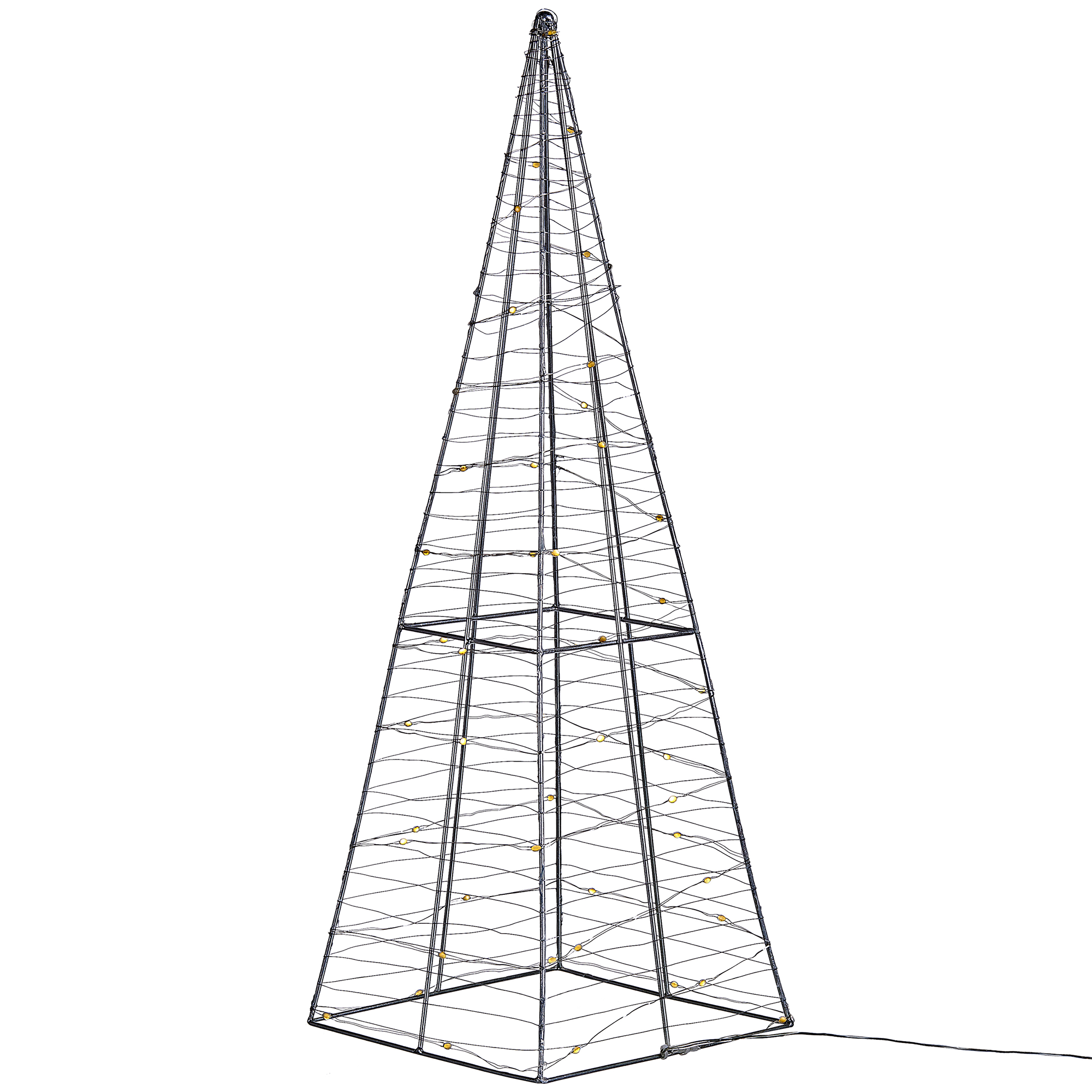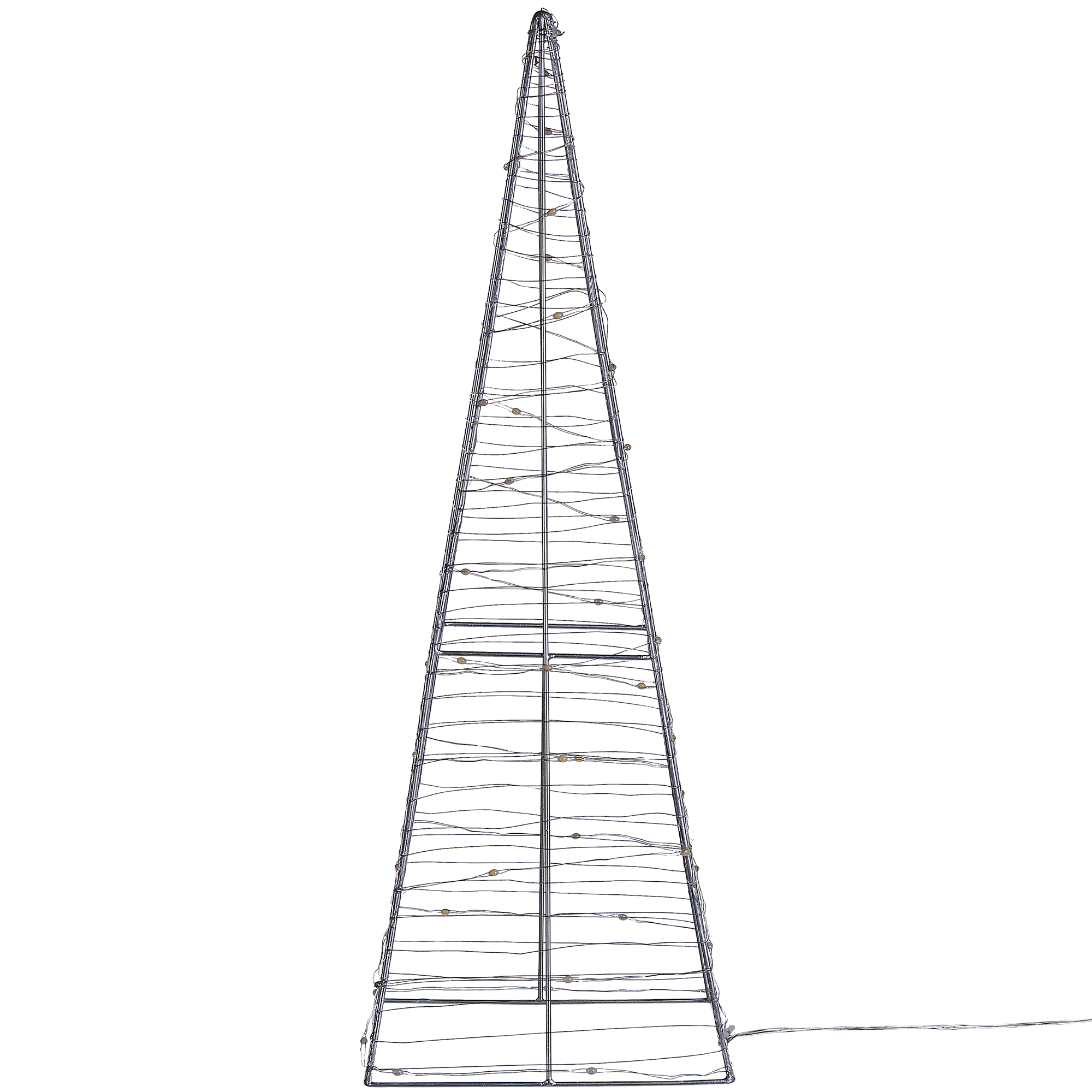Valaistu joulukoriste sisä- ja ulkotiloihin. Lisää sisä- tai ulkotilaan modernia jouluilmettä tällä kauniilla valaistulla koristeella. Se on loistava valinta etenkin joulunaikaiseen sisustukseen, sopien kuitenkin myös terassin tai parvekkeen valaisijaksi ympäri vuoden. Joulukuusta muistuttava koriste on valmistettu metallista ja viimeistelty LED-valonauhalla. Kokonsa ansiosta se mahtuu sekä ikkunalaudalle että lattialle.
