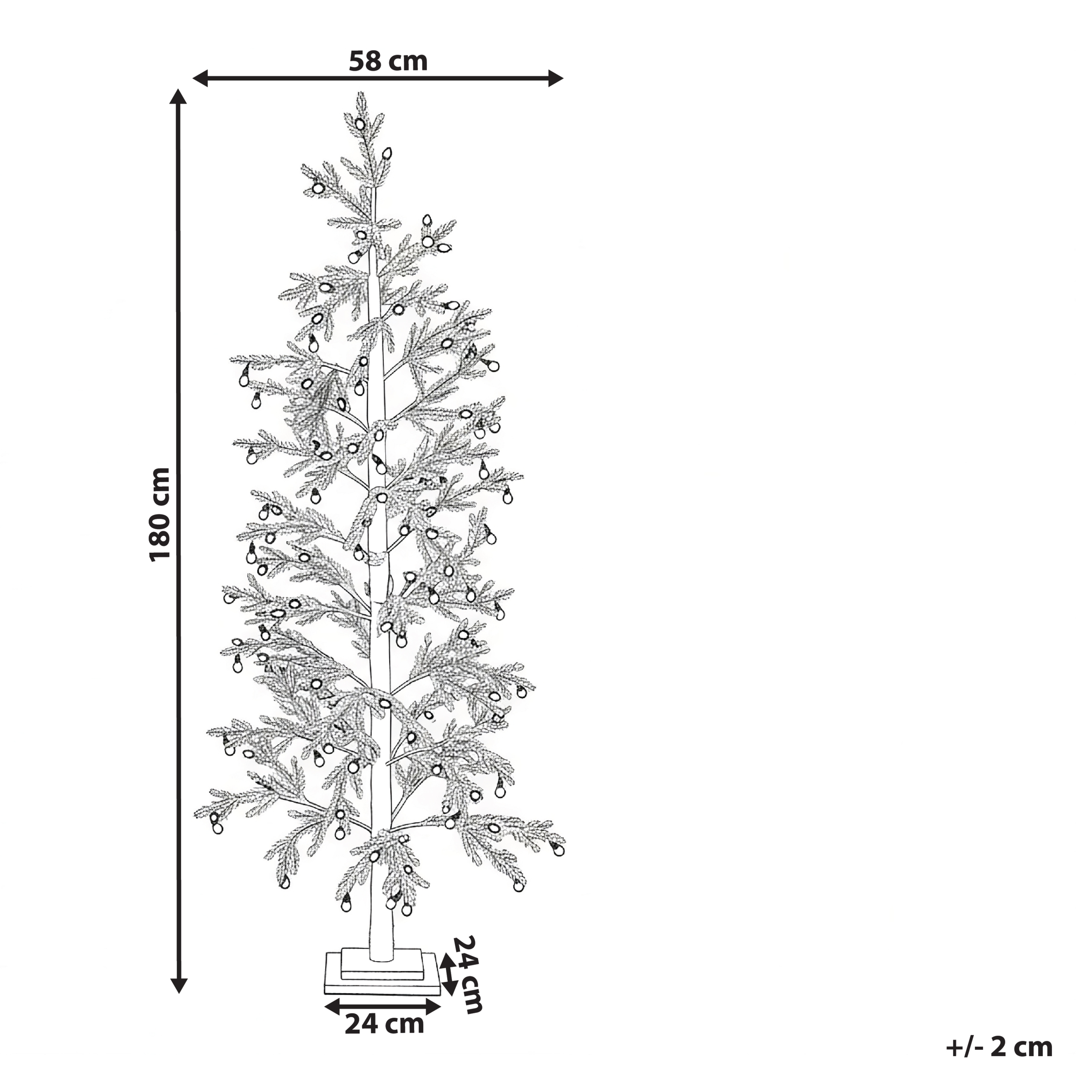 Luminen LED-valopuu sisä- ja ulkokäyttöön. Tuo kotiin tai puutarhaan joulun viehätystä tällä valopuulla, jossa on moniväriset LED-valot ja luminen viimeistely. Kestävistä materiaaleista valmistettu joulukuusi on suunniteltu kestämään ulko-olosuhteita. Sen luonnollisen näköiset oksat valkoisine korostuksineen luovat taianomaisen talvisen tunnelman. Se on ajaton koriste, joka lisää eleganssia mihin tahansa joulusisustukseen.