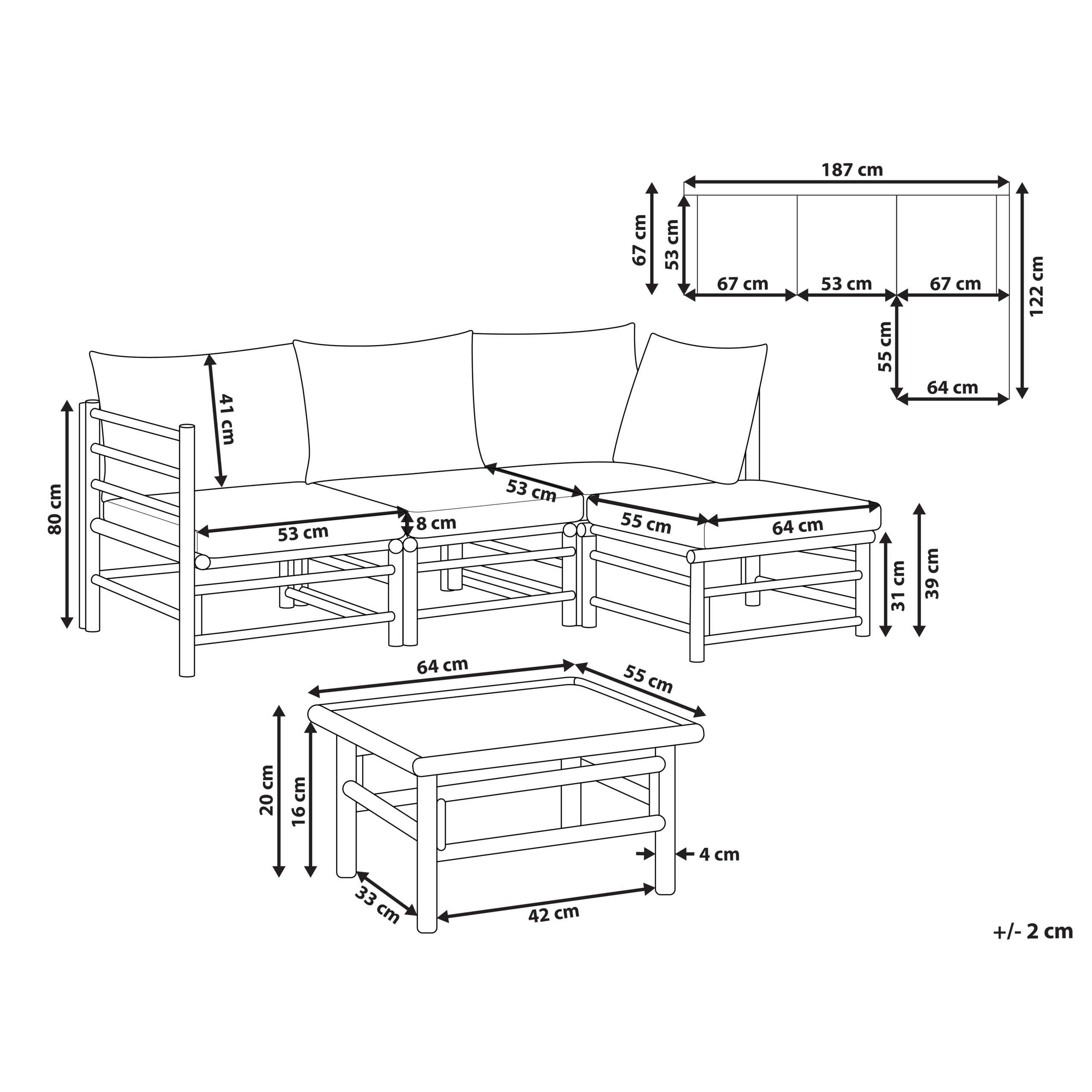 4-istuttavan sohvan mitat: 187x122x80