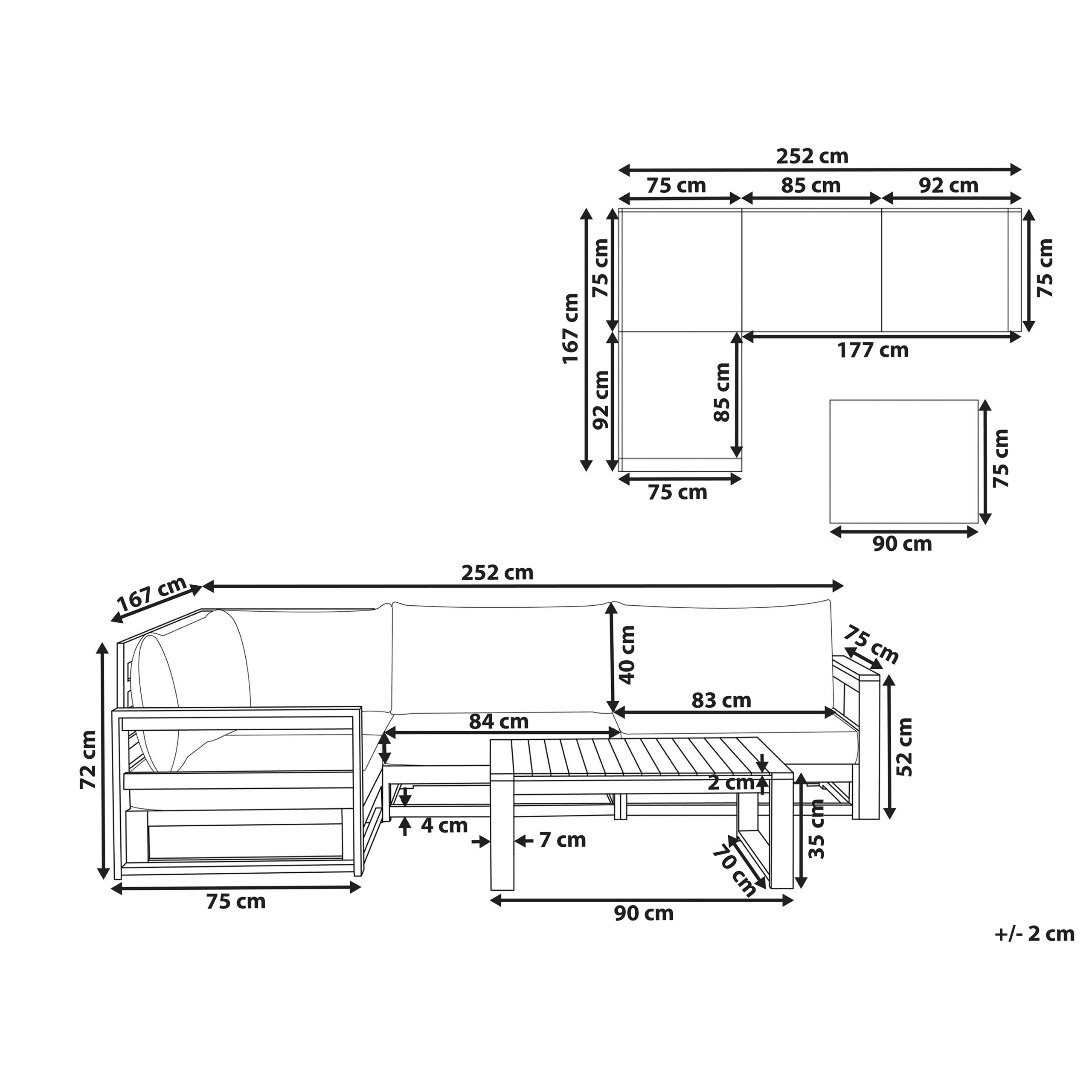 Ulkokulmasohva ja pöytä 4-istuttava TIMOR Oikea modulaarinen sertifioitu akaasia Vaaleanruskea