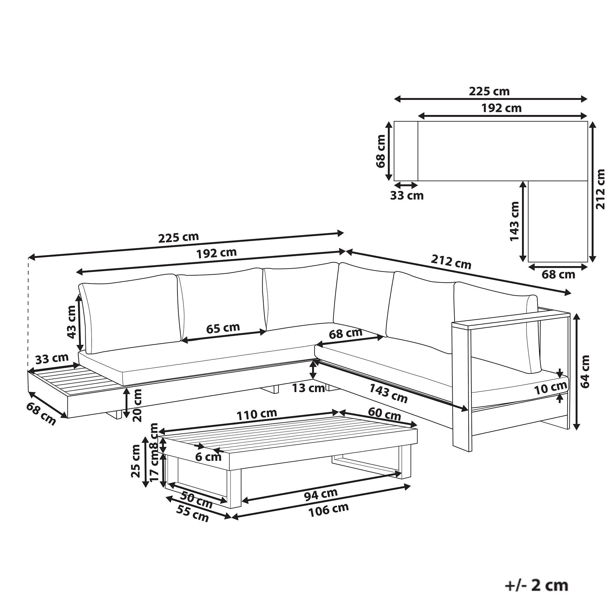 3-istuttavan sohvan mitat: 225x68x64