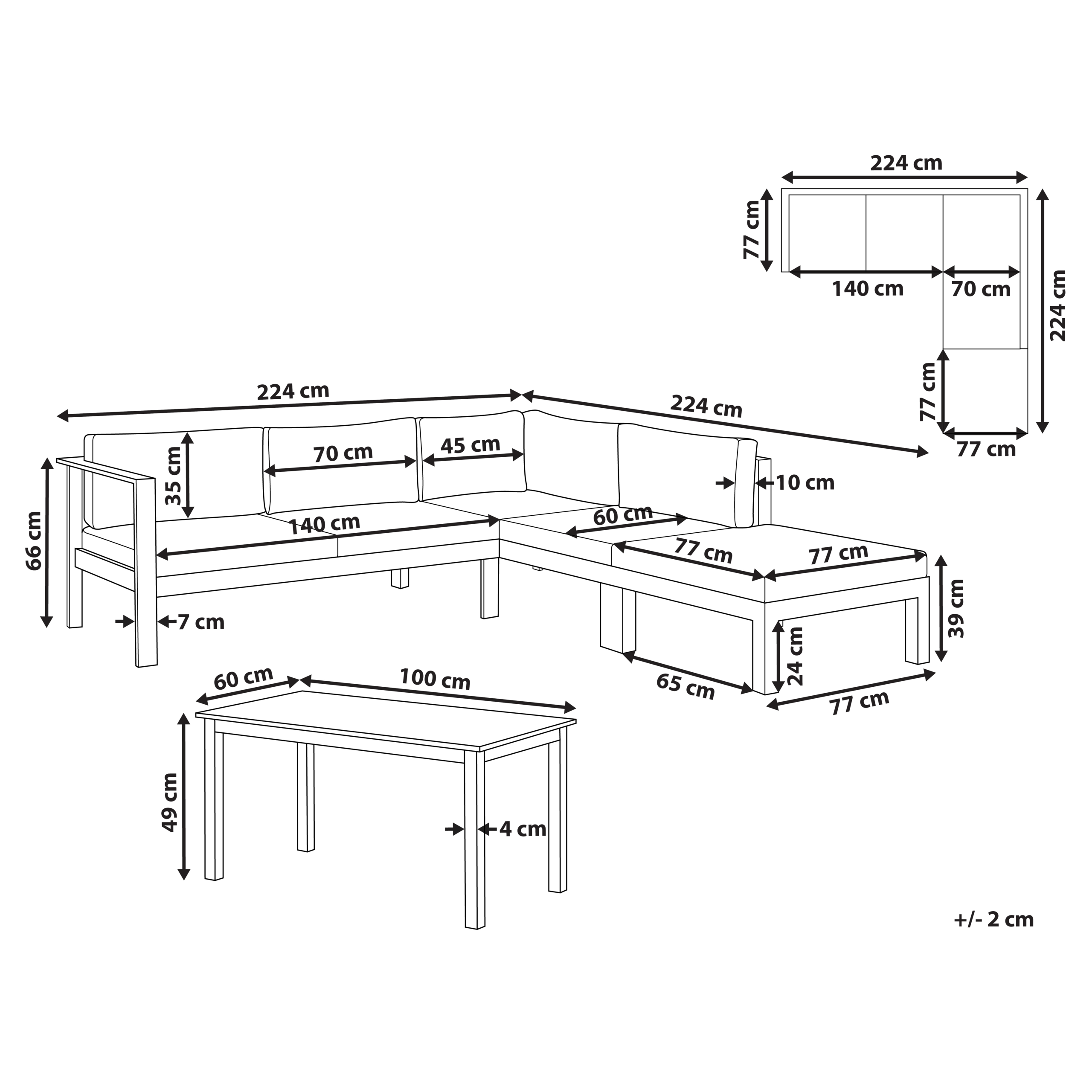 Sohvan mitat: 224x224x66