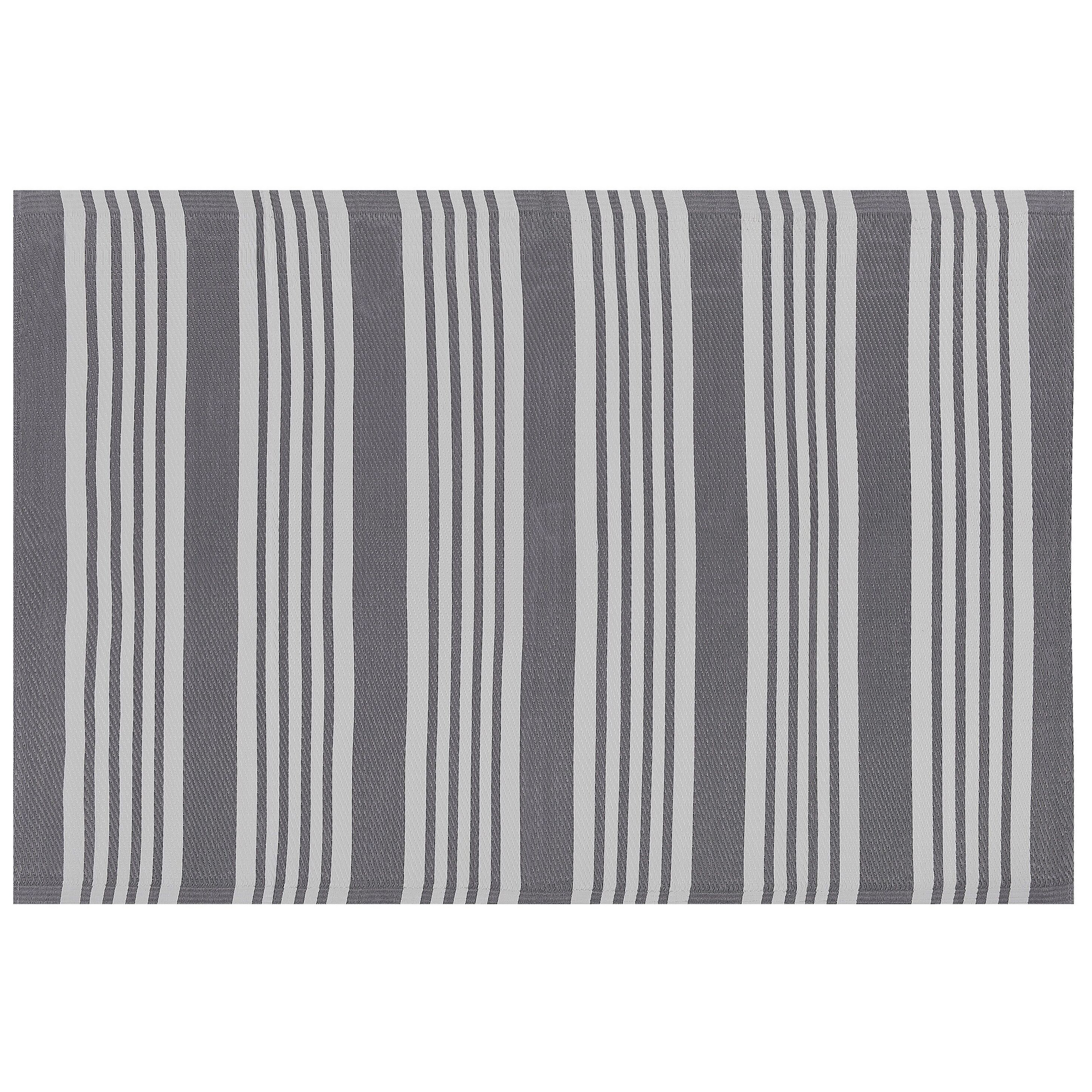 Raidallinen matto sisä- tai ulkokäyttöön. Tämä ulkotiloihin sopiva matto on trendikkään raidallinen, joka virkistää sisä- ja ulkotiloja. Kiitos kestävien materiaalien, se on täydellinen puutarhaan ja terassille, mutta myös sisätiloihin jotka likaantuvat helposti, kuten kylpyhuoneet ja keittiöt. Tiukasti kudotut kuidut pitävät laatunsa pitkään.