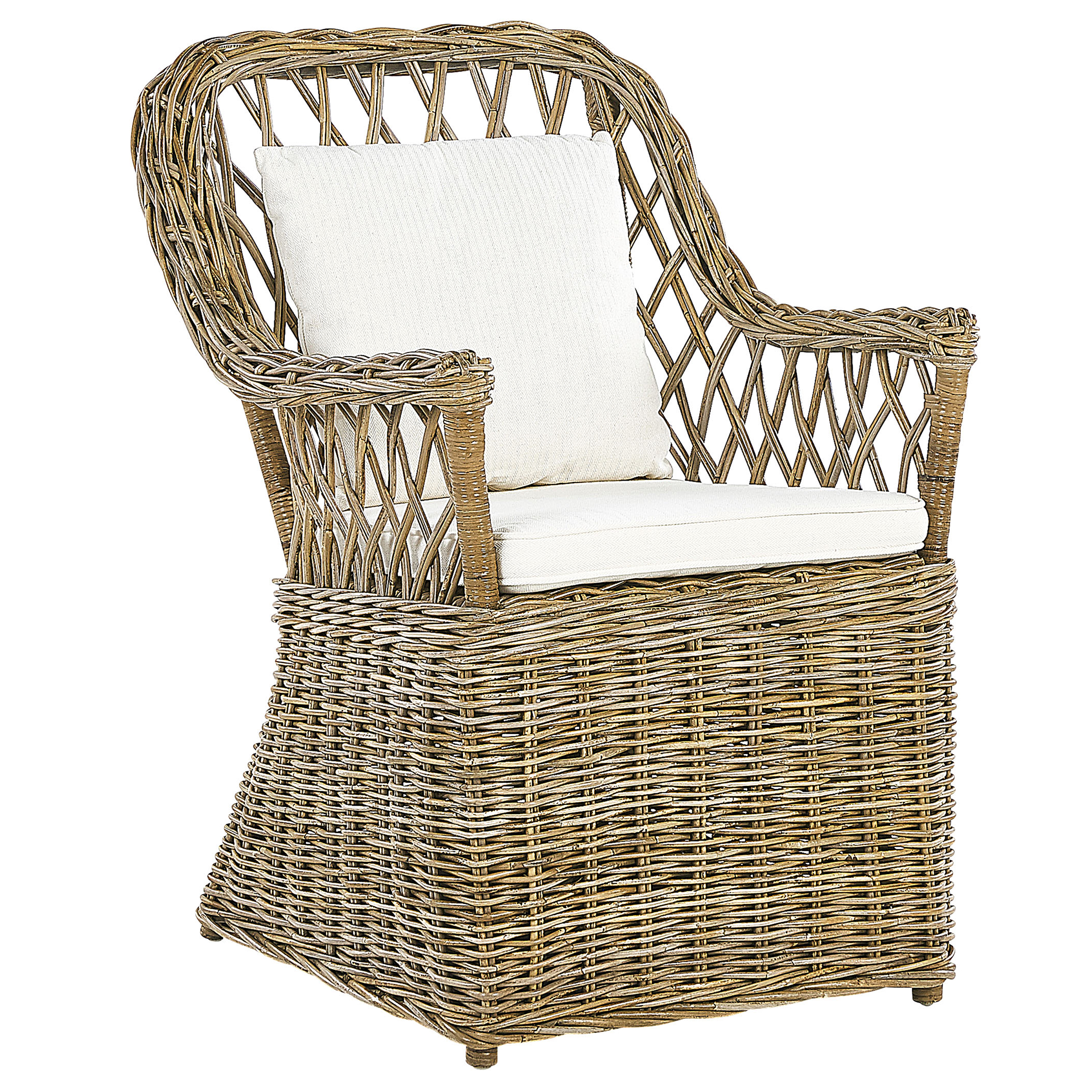 Rottinkinen nojatuoli. Tämä nojatuoli tuo tyyliä mihin tahansa asuintilaan. Se on valmistettu luonnollisesta rottingista, joka saa nojatuolin sulatumaan moniin erilaisiin tiloihin. Boho-tyylin inspiroima punos saa nojatuolin erottumaan edukseen missä tahansa asuintilassa, tuoden tilaan rustiikkista ilmettä. Mukana tulevat yhteensopivat paksusti, pehmustetut pehmusteet takaavat istumamukavuuden, ja jaloissa sijaitsevat muovitassut suojaavat lattiaa naarmuilta.