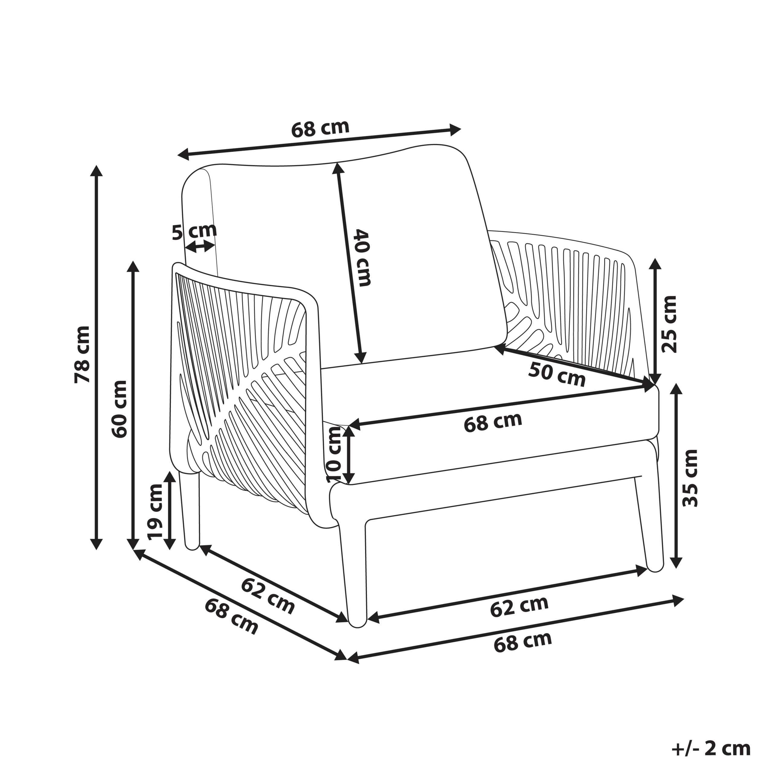 Minimalistinen matala nojatuoli ulkokäyttöön. Nauti rentouttavista hetkistä tässä minimalistisessa ulkonojatuolissa, jossa on käytännölliset käsinojat ja paksut, mukavat pehmusteet, jotka takaavat erinomaisen mukavuuden. Ulkokäyttöön suunnitellussa mutta myös sisätiloihin sopivassa nojatuolissa yhdistyvät tyyli ja toiminnallisuus. Kevyen rakenteensa ansiosta sitä on helppo siirtää, ja irrotettavat tyynynpäälliset takaavat vaivattoman puhdistuksen. Kestävä ja vähän ylläpitoa vaativa tuoli on ihanteellinen valinta erilaisiin tiloihin.