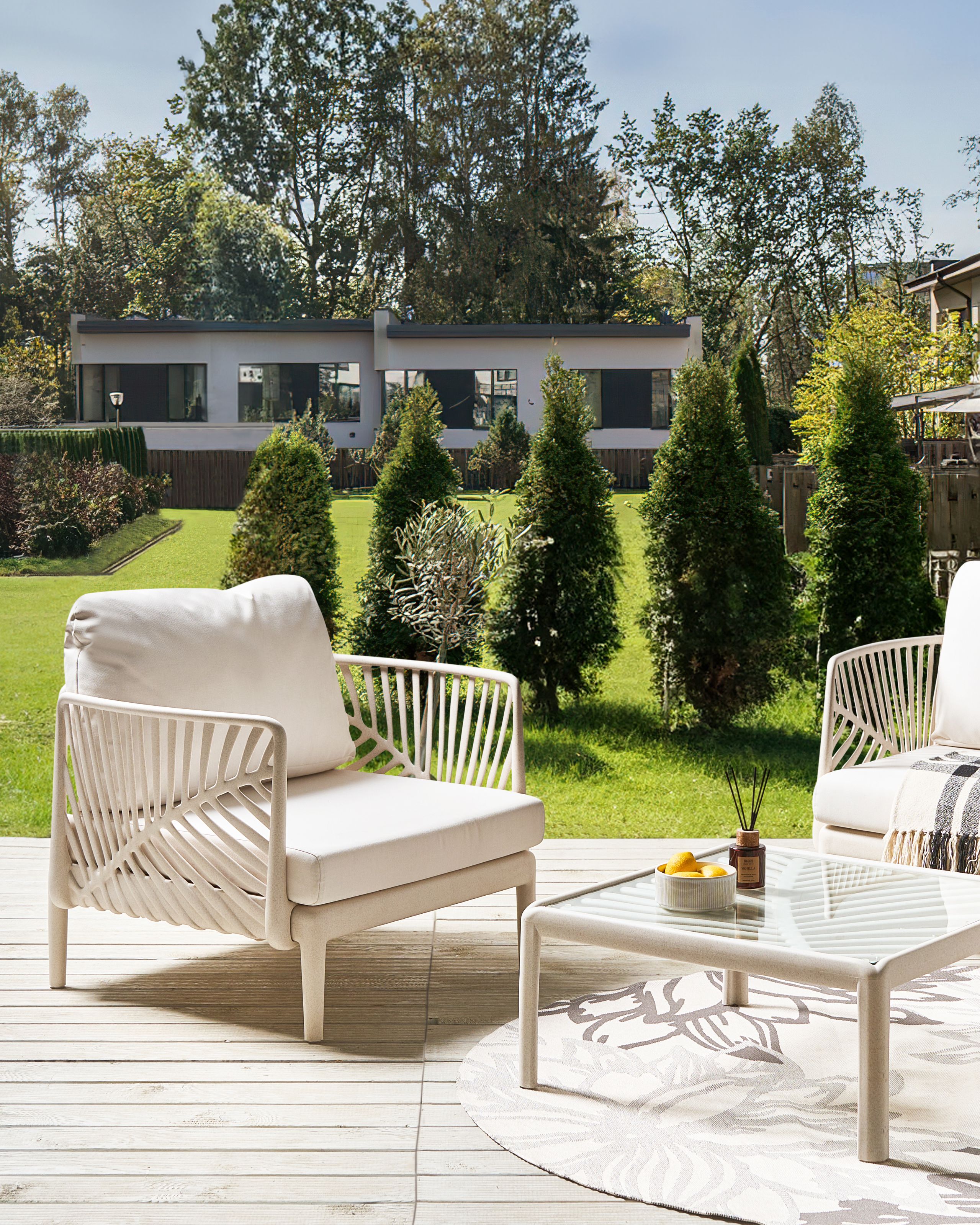 Minimalistinen matala nojatuoli ulkokäyttöön. Nauti rentouttavista hetkistä tässä minimalistisessa ulkonojatuolissa, jossa on käytännölliset käsinojat ja paksut, mukavat pehmusteet, jotka takaavat erinomaisen mukavuuden. Ulkokäyttöön suunnitellussa mutta myös sisätiloihin sopivassa nojatuolissa yhdistyvät tyyli ja toiminnallisuus. Kevyen rakenteensa ansiosta sitä on helppo siirtää, ja irrotettavat tyynynpäälliset takaavat vaivattoman puhdistuksen. Kestävä ja vähän ylläpitoa vaativa tuoli on ihanteellinen valinta erilaisiin tiloihin.
