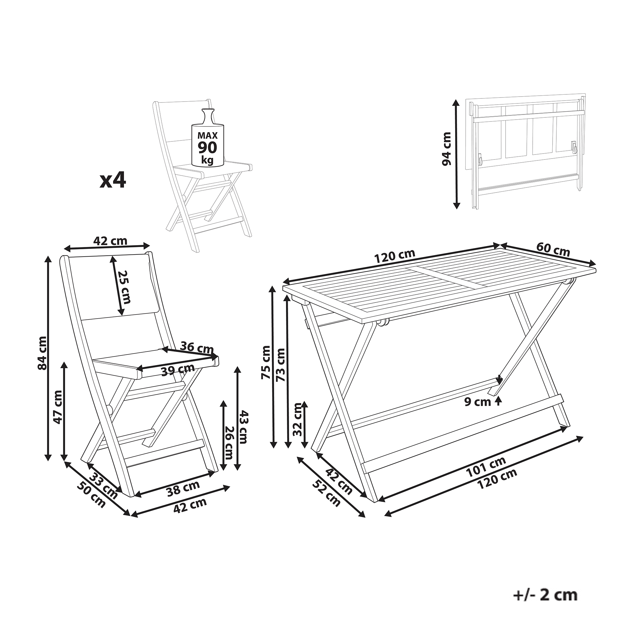 Ominaisuudet: Ajaton muotoilu, Puun luonnolliset syykuviot tekevät jokaisesta kappaleesta ainutlaatuisen, Luotettava työn laatu, Suojattava vedeltä ja sateelta laadun säilyttämiseksi, Kokoontaitettava ja helppo säilyttää, Kevyt ja helppo siirtää