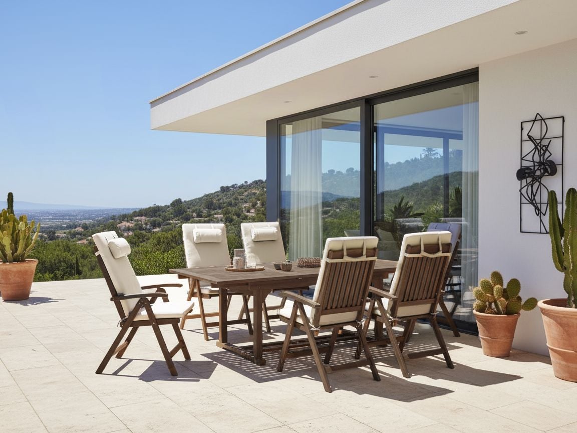 Ominaisuudet: Selkänoja säädettävissä kuuteen eri asentoon, Ajaton muotoilu, UV-kestävyys 5 (ISO 105-B02), Valmistettu luonnollisesti kestävistä materiaaleista, Suojattava vedeltä ja sateelta laadun säilyttämiseksi, Vedenpitävä korkeatasoisten materiaalien ansiosta, Kokoontaitettuna säästää tilaa, Jatkettava pöytätaso tarjoaa lisää tilaa