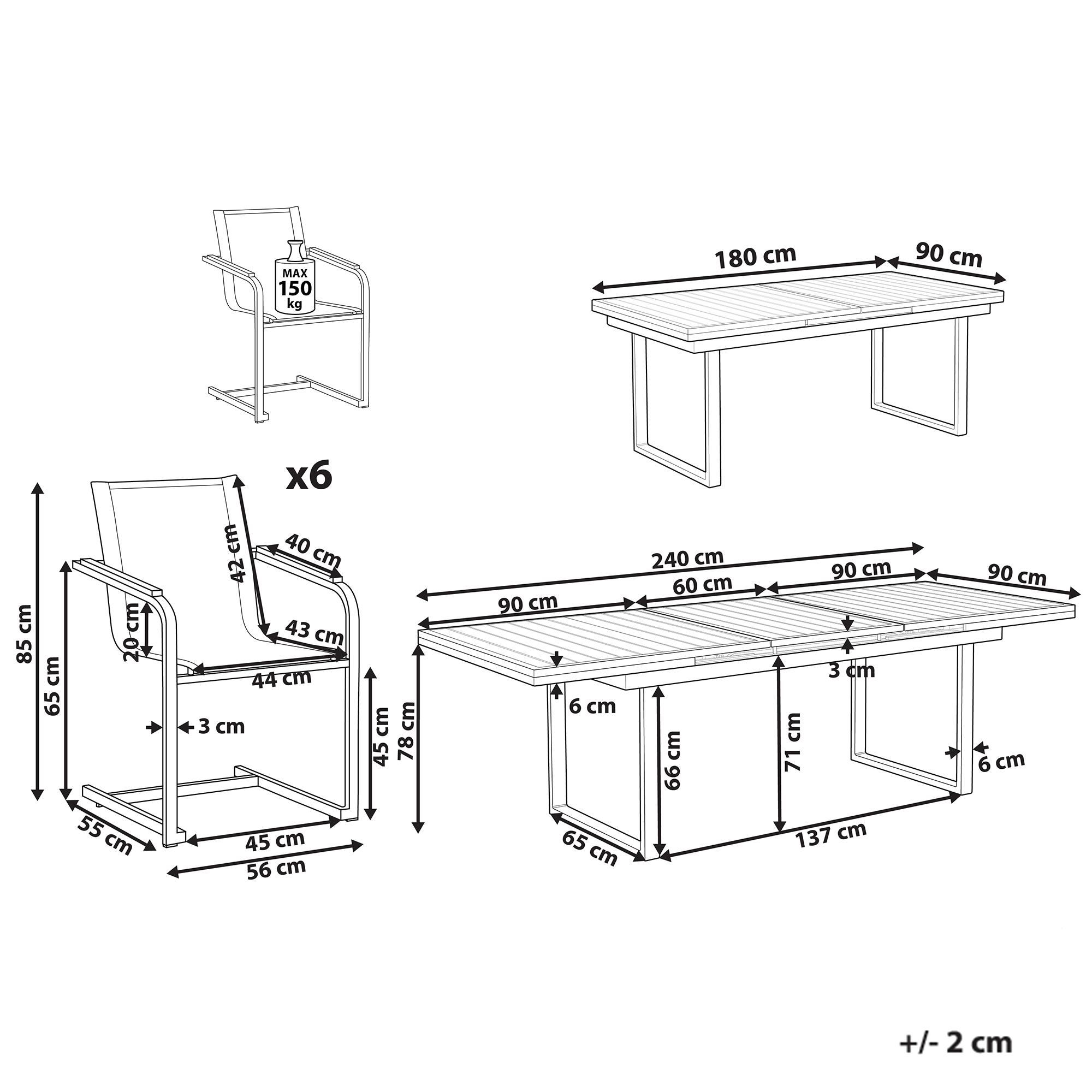 Pöydän mitat: 180/240x90x84 cm