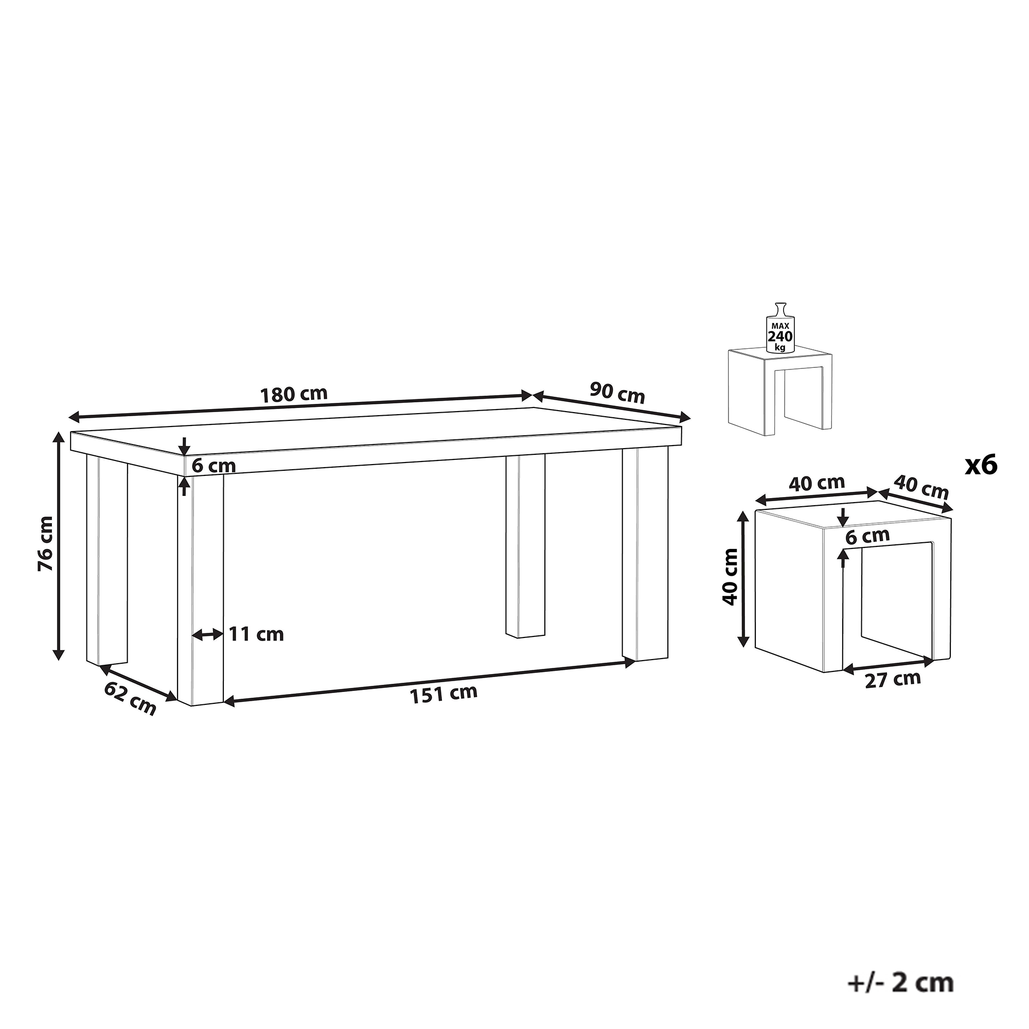 Pöydän mitat: 180x90x76 cm
