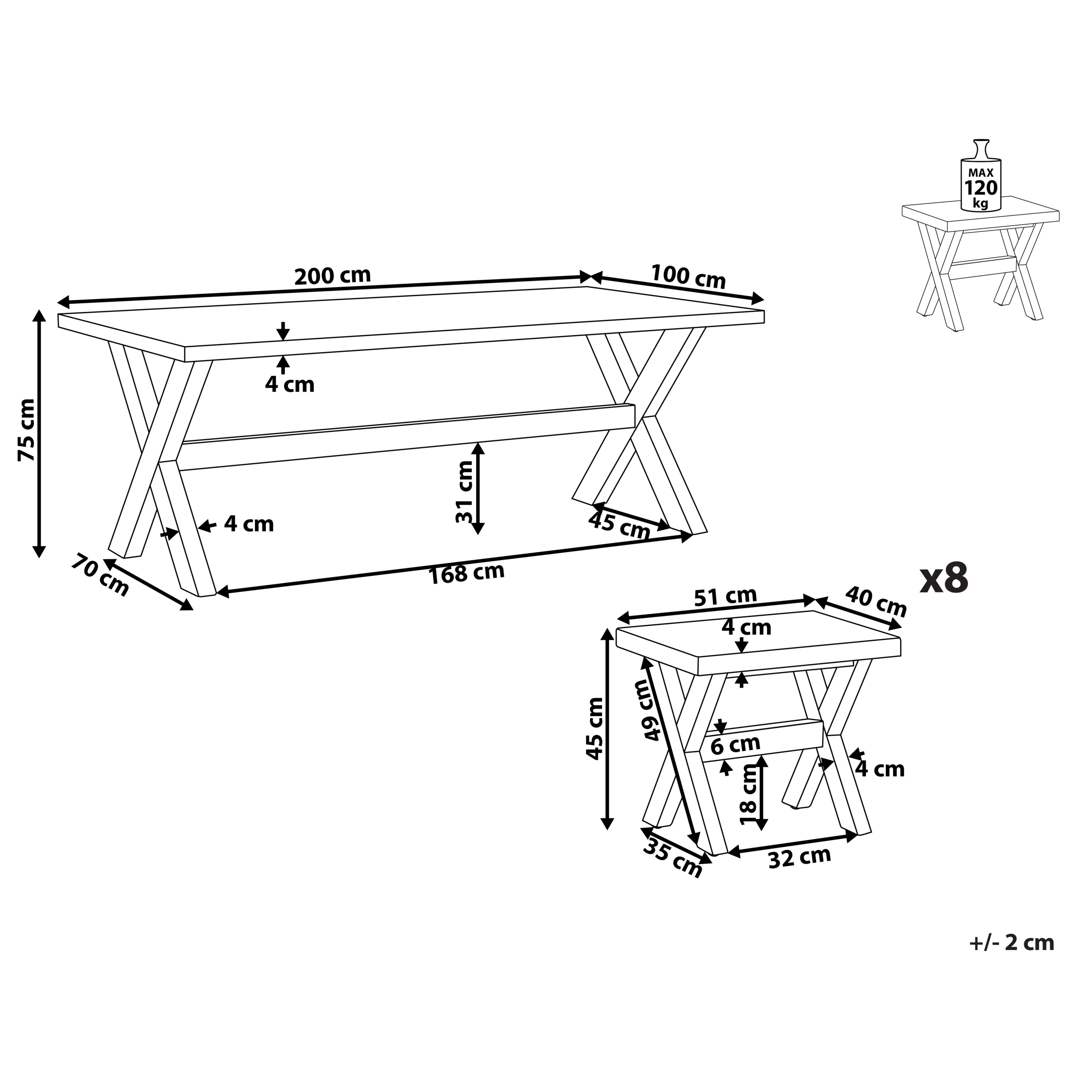 Pöydän mitat: 200x100x75 cm