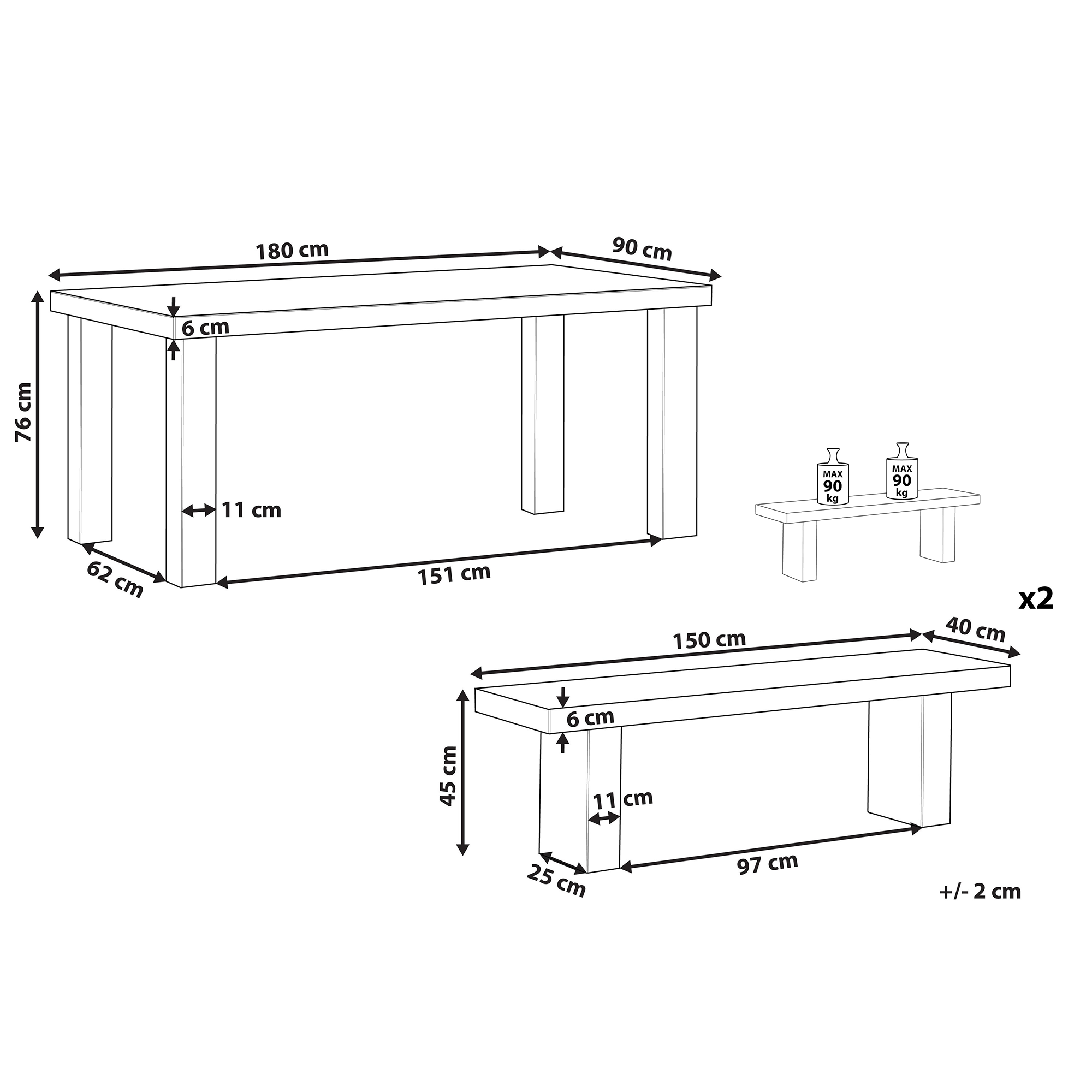Hintaan sisältyy: 1 x Pöytä, 2 x Penkki
