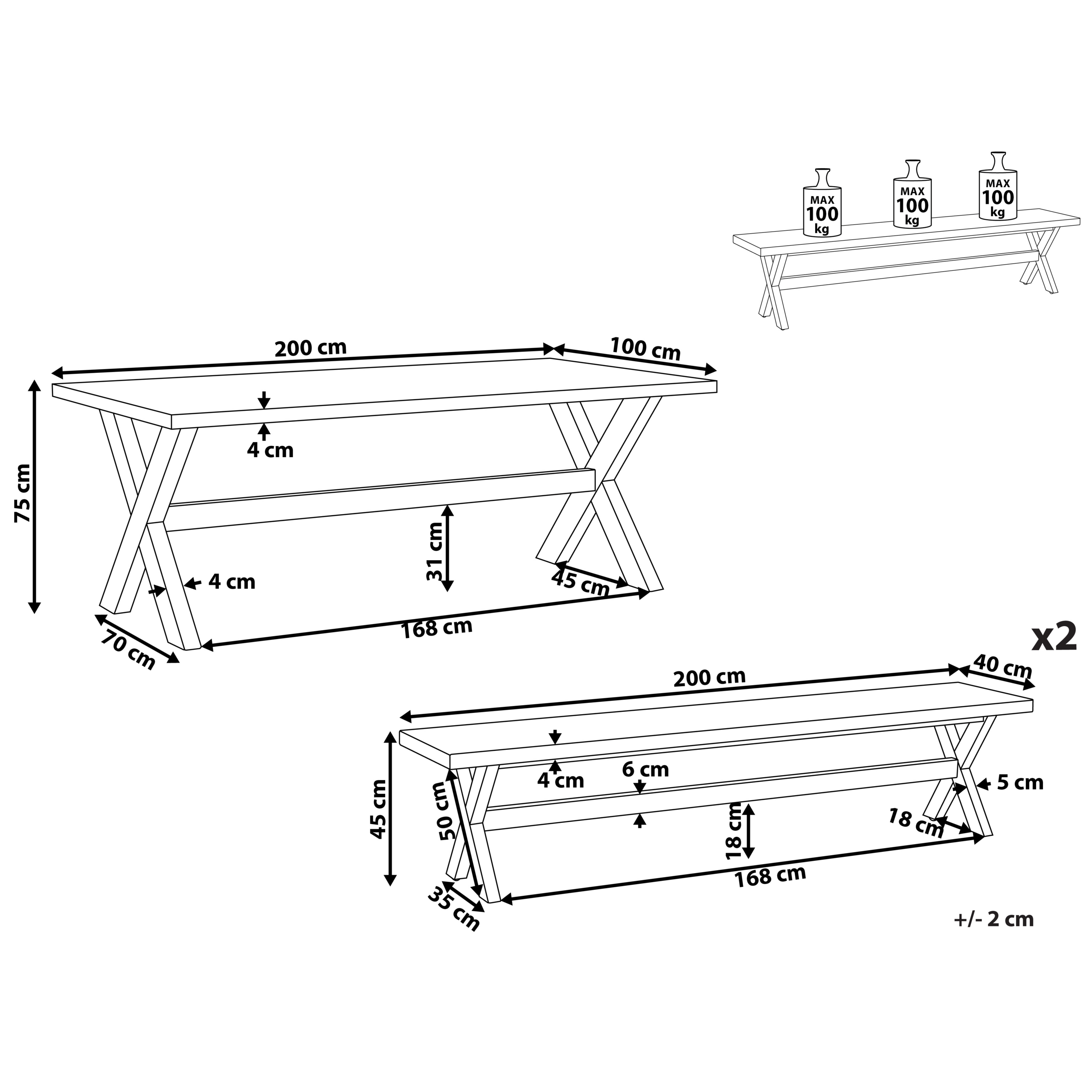 Hintaan sisältyy: 1 x Pöytä, 2 x Penkki
