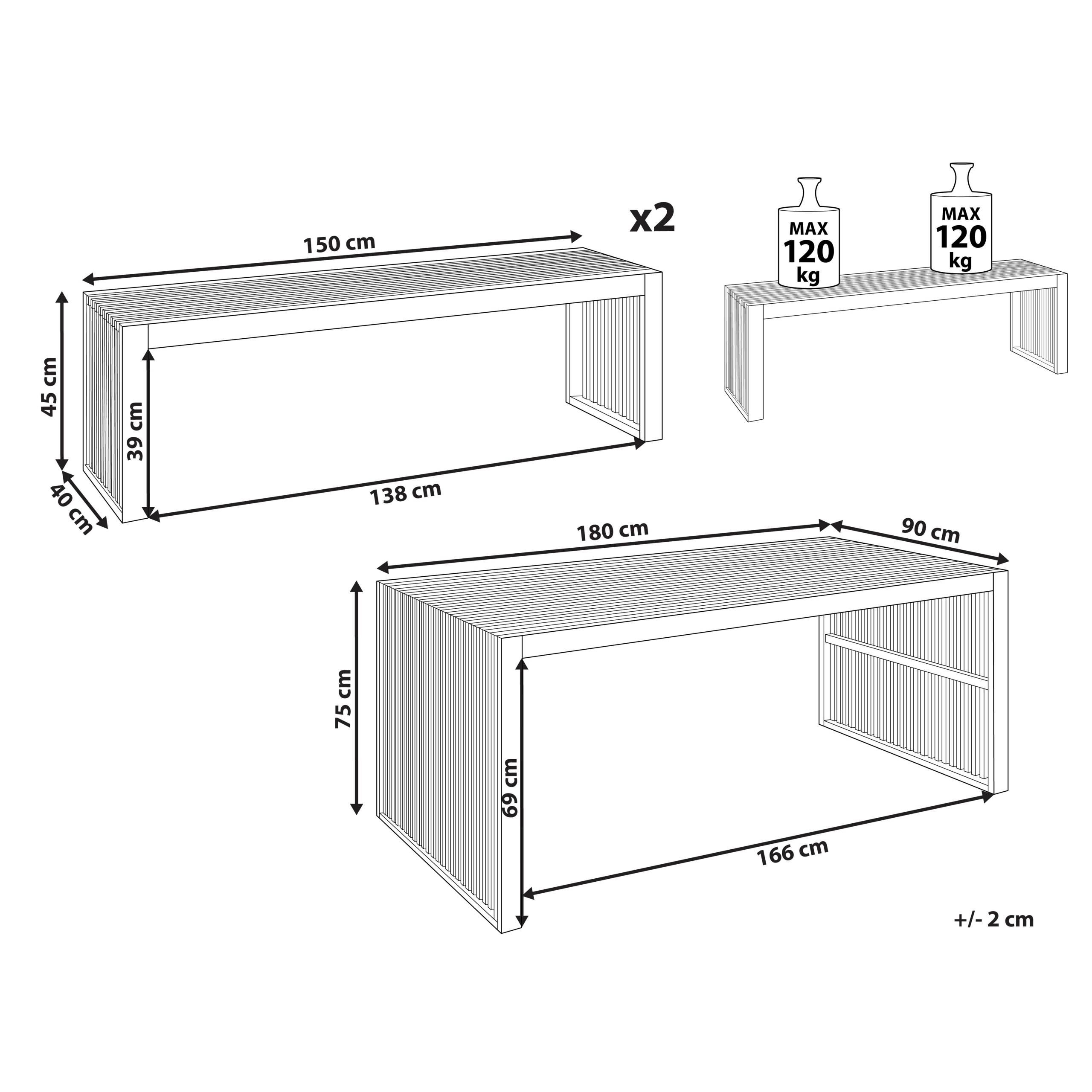 Hintaan sisältyy: 2 x Penkki, 1 x Pöytä