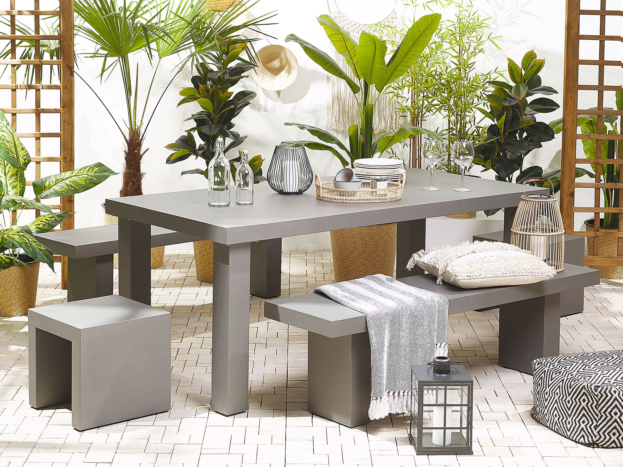 Ulkoruokailuryhmä penkeillä ja jakkaroilla 6-istuttava TARANTO betoni Harmaa