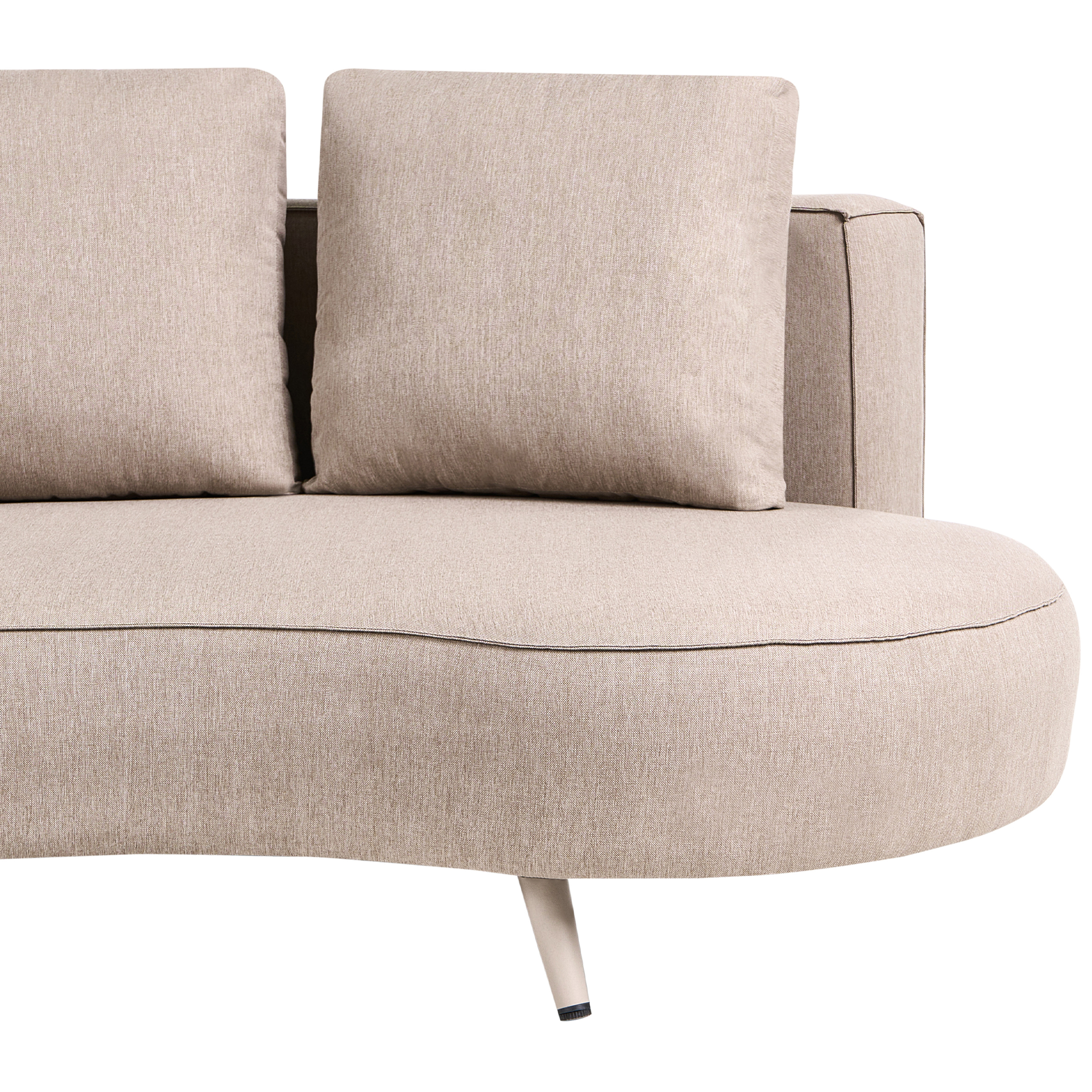 Retrotyylinen pavun muotoinen sohva puutarhaan. Tämä mukava, pavun muotoinen 3-istuttava ulkosohva on täydellinen rentoutumispaikka mihin tahansa puutarhaan. Se on verhoiltu vettä hylkivällä ja UV-säteilyn kestävällä olefin-kankaalla, ja mukana toimitetaan kolme pehmeää selkätyynyä, joissa on irrotettavat päälliset. Lämmin beige väri sopii monenlaisiin sisustustyyleihin, ja vankka alumiinirunko takaa kestävän tuen.