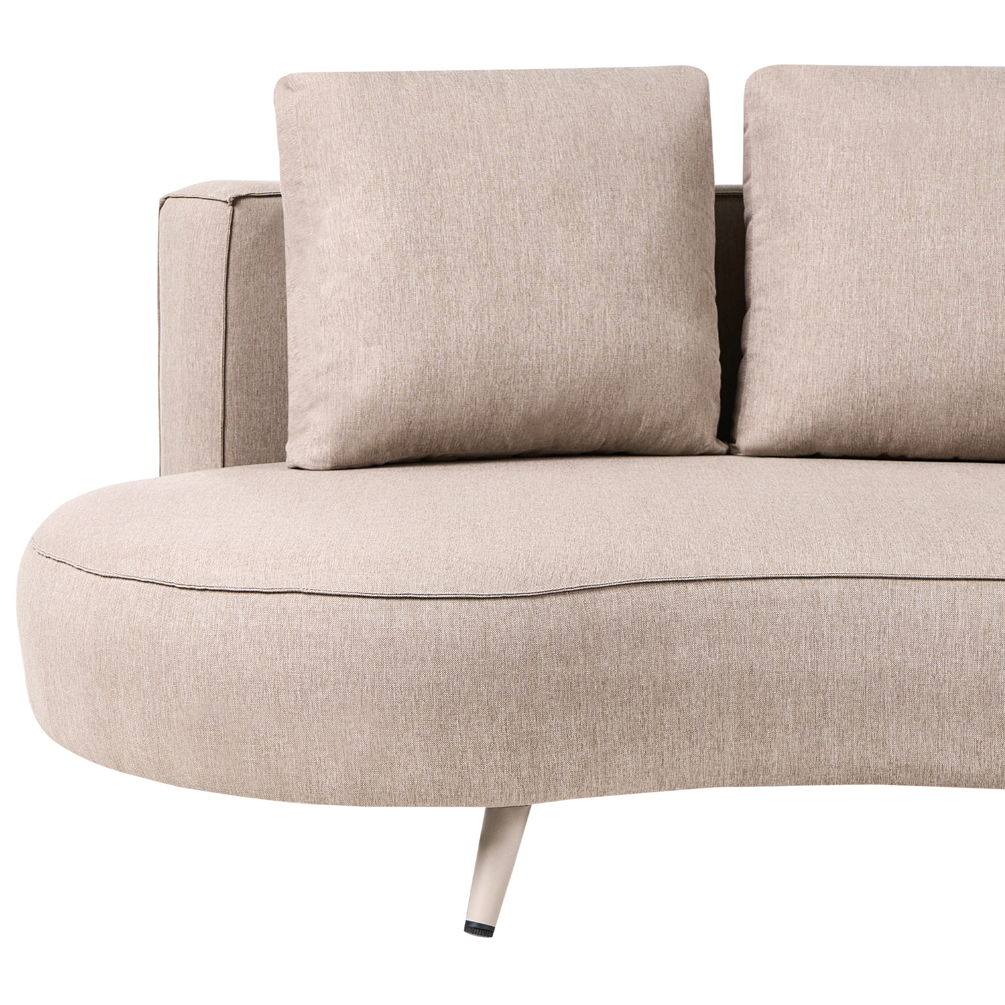 Retrotyylinen pavun muotoinen sohva puutarhaan. Tämä mukava, pavun muotoinen 3-istuttava ulkosohva on täydellinen rentoutumispaikka mihin tahansa puutarhaan. Se on verhoiltu vettä hylkivällä ja UV-säteilyn kestävällä olefin-kankaalla, ja mukana toimitetaan kolme pehmeää selkätyynyä, joissa on irrotettavat päälliset. Lämmin beige väri sopii monenlaisiin sisustustyyleihin, ja vankka alumiinirunko takaa kestävän tuen.