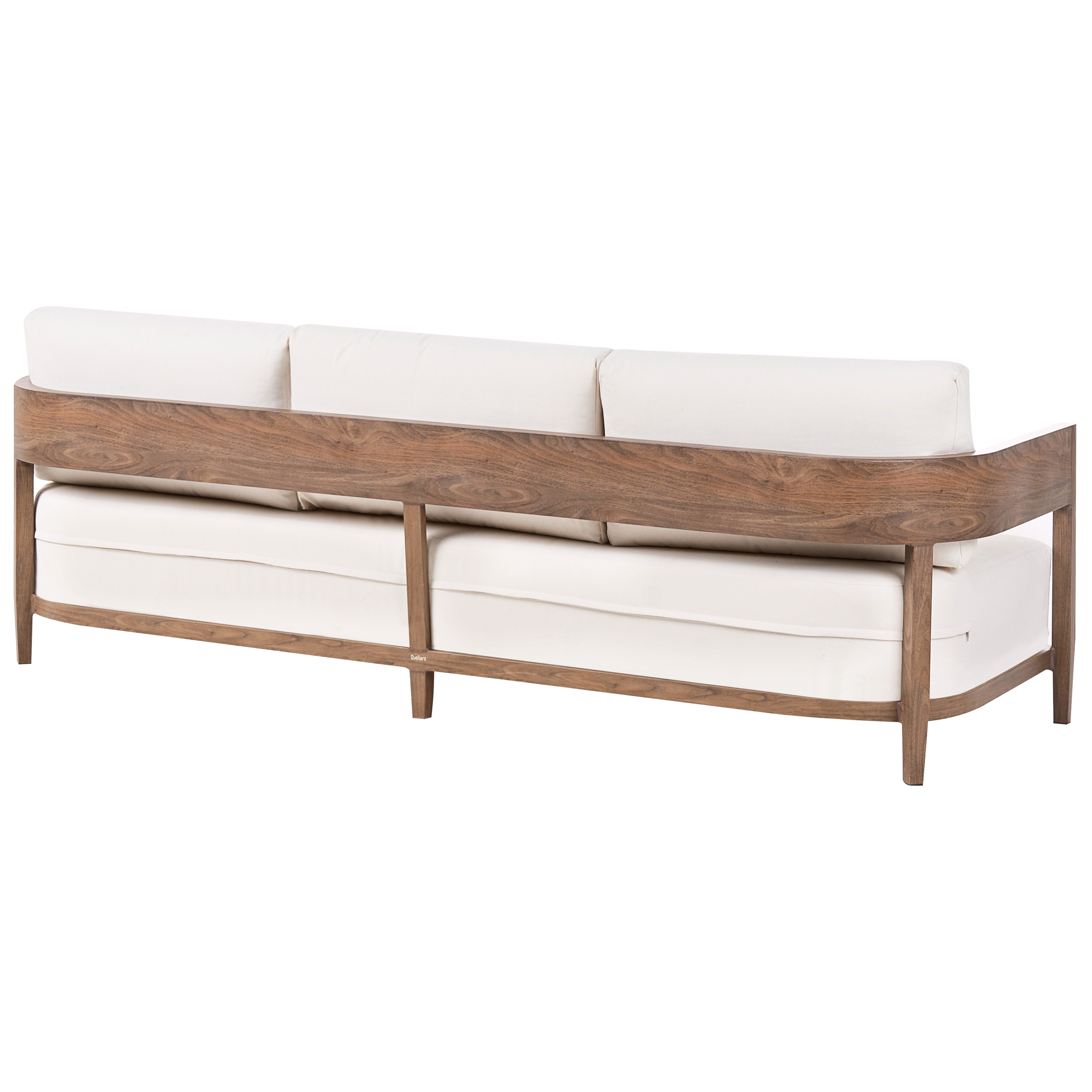 Moderni puutarhan sohva pehmusteilla. Tuo puutarhaan mukavuutta ja tyyliä tällä tilavalla 3-istuttavalla ulkosohvalla. Se on valmistettu kestävästä alumiinista luonnollisella puumaisella viimeistelyllä, ja se antaa modernin, virtaviivaisen ilmeen, joka on suunniteltu kestämään sääolosuhteita. Paksut istuin- ja selkänojatyynyt tarjoavat erinomaisen mukavuuden, ja ne on verhoiltu pehmeällä polyesterikankaalla, jonka irrotettavat, vettä hylkivät päälliset helpottavat ylläpitoa. Täydellinen puutarhaan, patiolle tai terassille, tuoden ulkotiloihin mukavuutta, toiminnallisuutta ja ajatonta, luonnon inspiroimaa muotoilua.