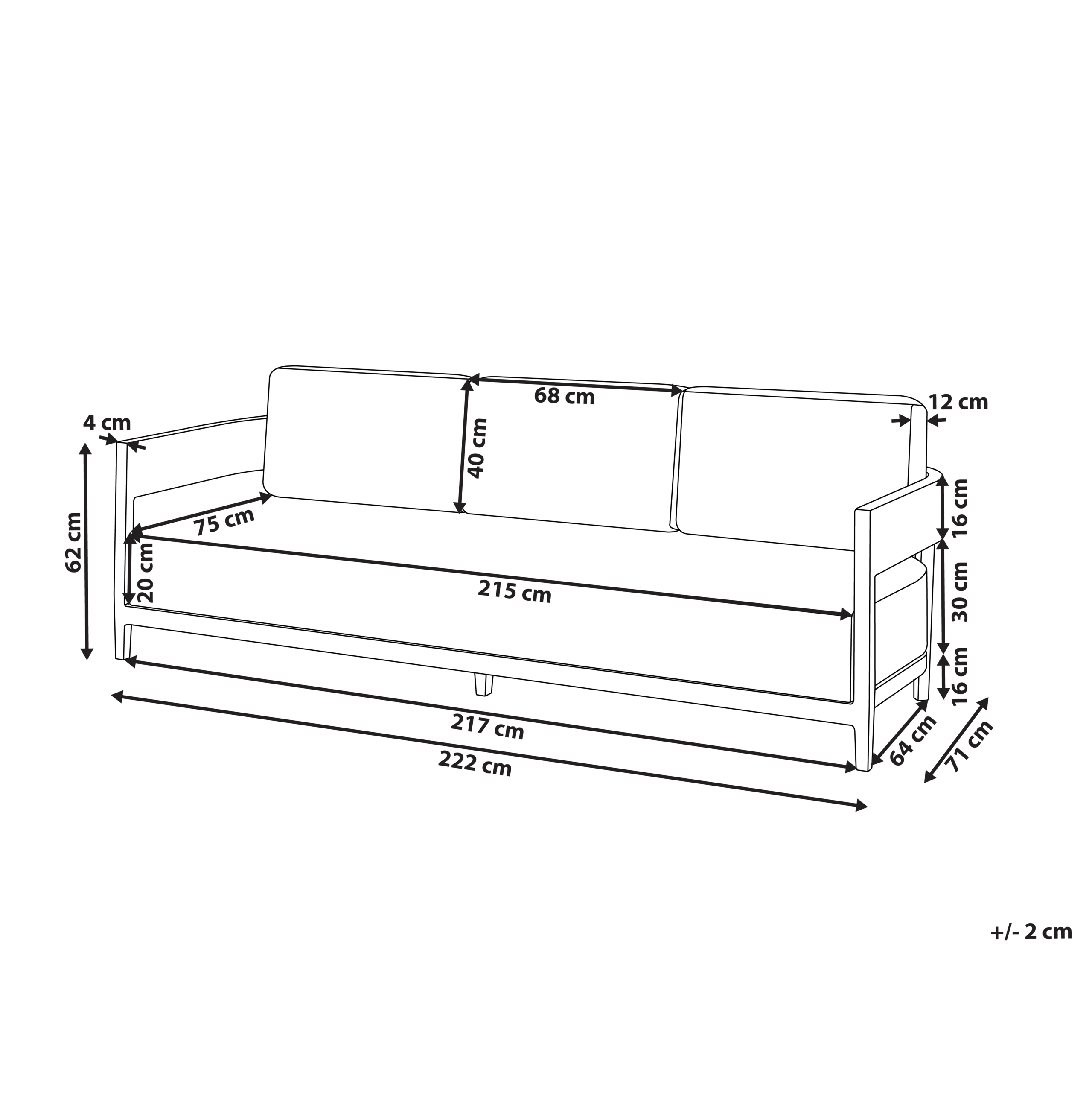 Istuinala: 215x75 cm