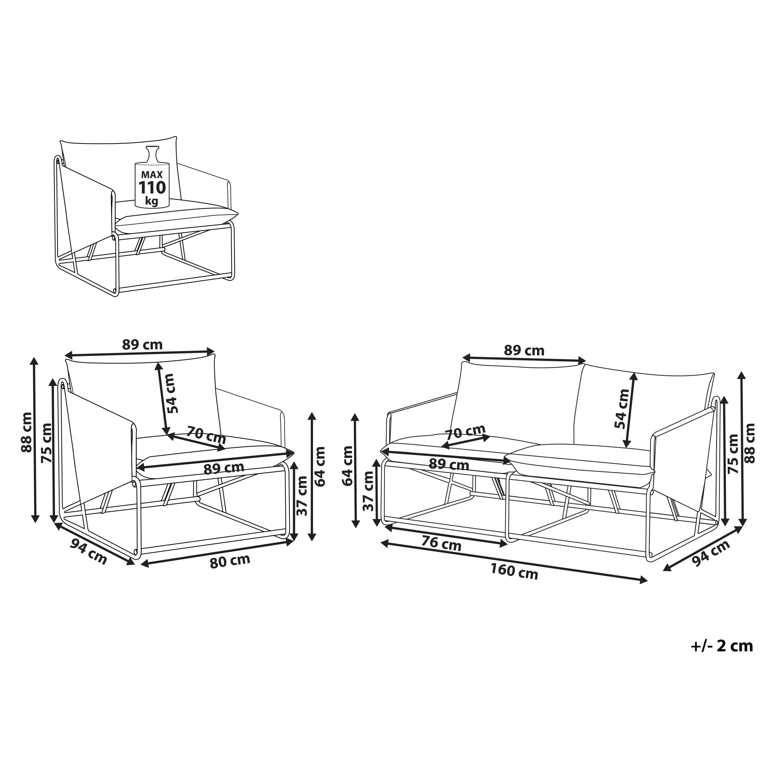 Matala kalteva sohvaryhmä tyynyillä. Tämä ylimitoitettu ulkosohvaryhmä tarjoaa tasapainon mukavuuden ja tyylin välillä, mikä tekee siitä erinomaisen valinnan moderniin sisustukseen. Settiin kuuluu 2-istuttava sohva ja yhteensopiva tuoli. Virtaviivaiset teräsrungot tarjoavat puhtaan, arkkitehtonisen ilmeen, kun taas muhkeasti pehmustetut tyynyt luovat viihtyisän paikan rentoutua. Vedenpitävä polyesterikangas takaa kestävyyden ja helppohoitoisuuden, ja käsinojien irrotettavat kangaspalat lisäävät käyttömukavuutta. Sohvaryhmä sopii erinomaisesti harmonisen ja elegantin oleskelupaikan luomiseen olohuoneeseen, puutarhaan tai terassille.
