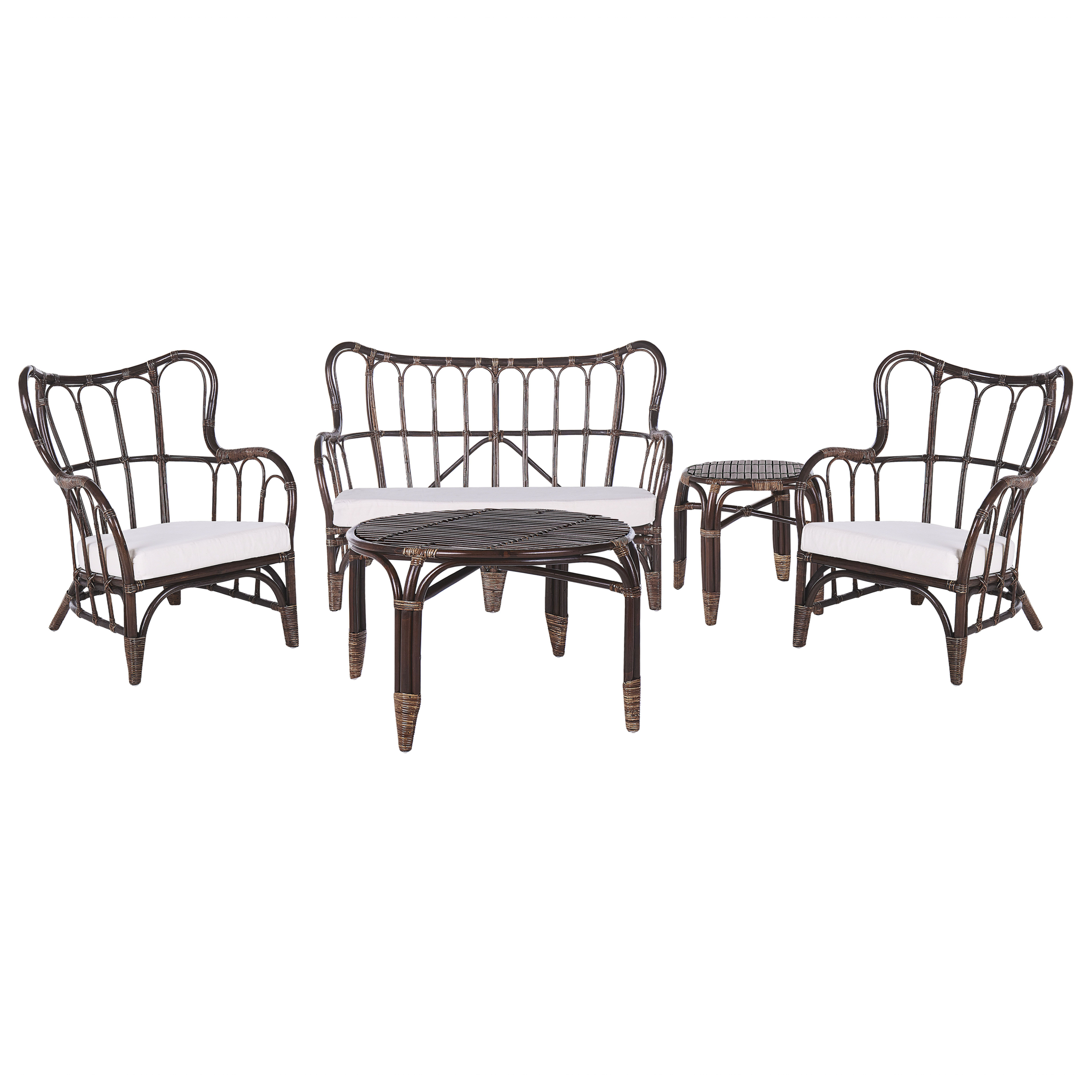 Kalustesetti kahdella pöydällä. Tämä hurmaava sohvaryhmä on kaikki mitä tarvitse käytännöllisen ja kauniin asuintilan luomiseen. Luonnollisesta rottingista valmistetut nojatuolit ja 2-istuttava sohva sopivat yhteen erilaisten kasvien ja kukkien kanssa. Kermanvalkoiset paksusti pehmustetut pehmusteet tarjoavat istumamukavuuden. Mukana tuleva pieni sivupöytä sekä leveä tasoinen sohvapöytä tarjoavat tilaa erilaisille naposteltaville, juomille ja lehdille. Tuo boho-tyyliä tilaan tällä ihastuttavalla sohvaryhmällä, joka tarjoaa tarpeeksi tilaa jopa 4 hengelle.