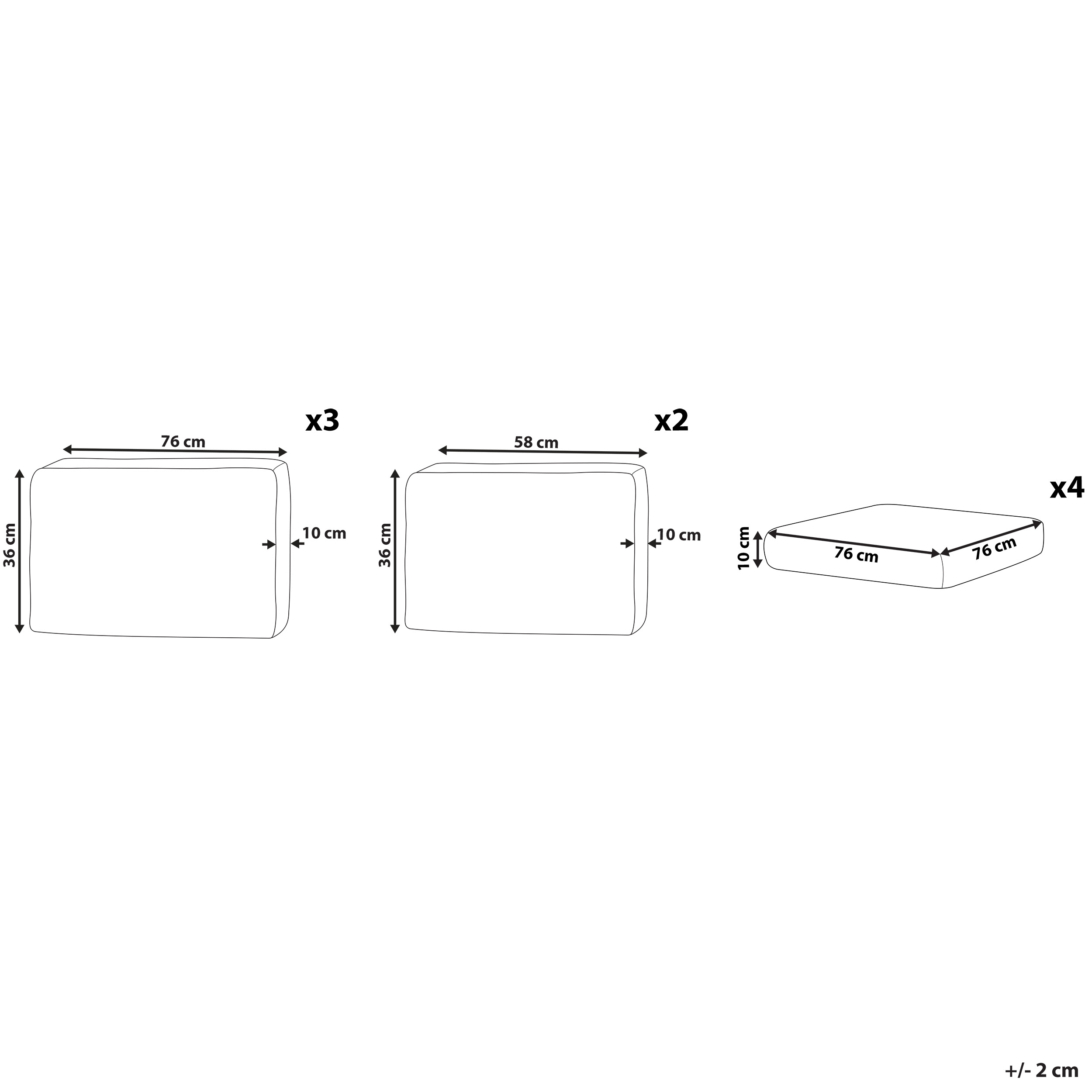 Ominaisuudet: Pitkäikäinen, Korkealaatuinen, Suunniteltu erityisesti ulkokäyttöön, UV-kestävyys 5 (ISO 105-B02), Vedenpitävä korkeatasoisten materiaalien ansiosta, Tyynynpäällisissä piilotetut saumat ja vetoketjut