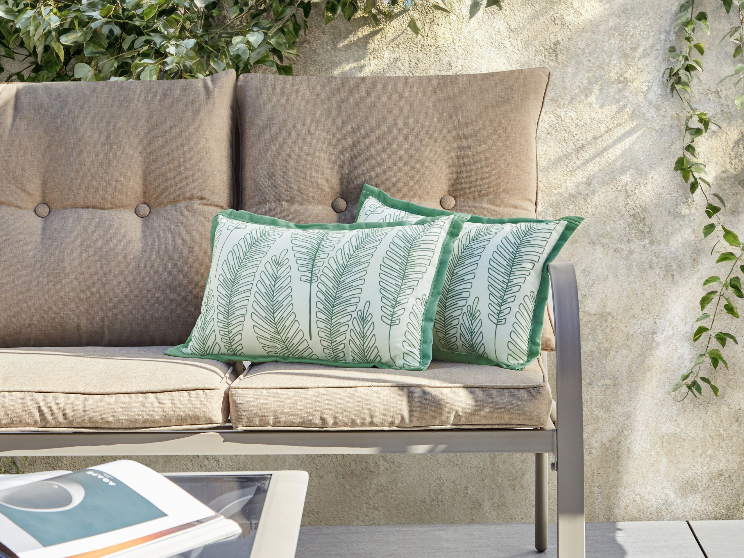 Puutarhan koristetyynysetti kasvikuosilla. Tuo ulkotilaasi tyyliä tällä kahden ulkotyynyn setillä, joka on suunniteltu tuomaan ulkotilaan kodikasta tunnelmaa. Ne sopivat täydellisesti lisäämään ripauksen persoonallisuutta istuinryhmään, tarjoten mukavuutta ja viehätystä. Vettä hylkivät polyesteripäälliset tarkoittavat, että ne kestävät myös huonompia kelejä. Tyynyt tarjoavat yksinkertaisen tavan kohottaa puutarhaa, parveketta tai terassia – käytitpä niitä sitten sohvalla loikoillessa, kirjaa lukiessa tai ystävien kanssa oleskellessa.