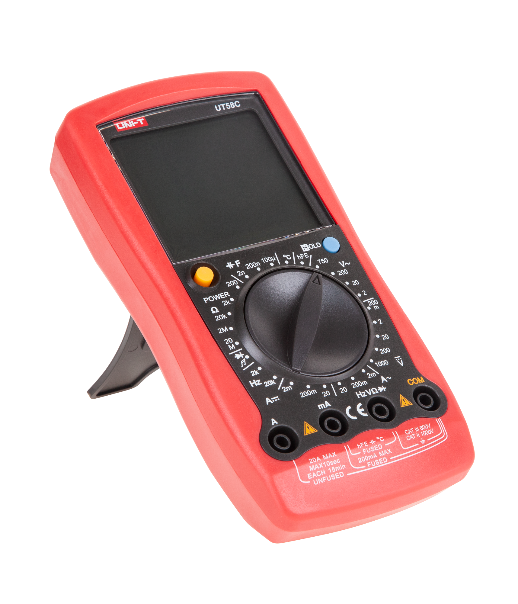UT58C on varustettu manuaalisella mittausalueen valinnalla, mikä mahdollistaa täyden mittaustarkkuuden hallinnan. Mittarissa on myös viimeisen lukeman pitotoiminto, automaattinen virrankatkaisu ja heikon pariston ilmaisin, jotka helpottavat käyttöä ja säästävät energiaa. 2000 lukeman enimmäislukema takaa selkeät ja tarkat tulokset.