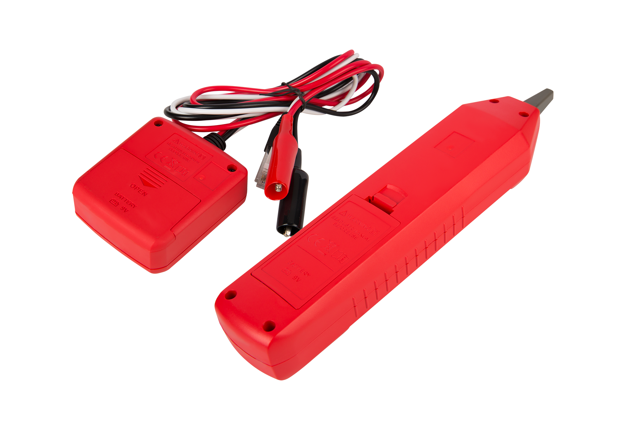 Mittarin mukana toimitetaan tarvittavat paristot lähettimen ja vastaanottimen virransyöttöä varten, mikä mahdollistaa välittömän käytön. Näin käyttäjät voivat suorittaa tarkastuksia ja vianmäärityksiä sähkö-, puhelin- ja verkkoasennuksissa nopeasti ja tehokkaasti.