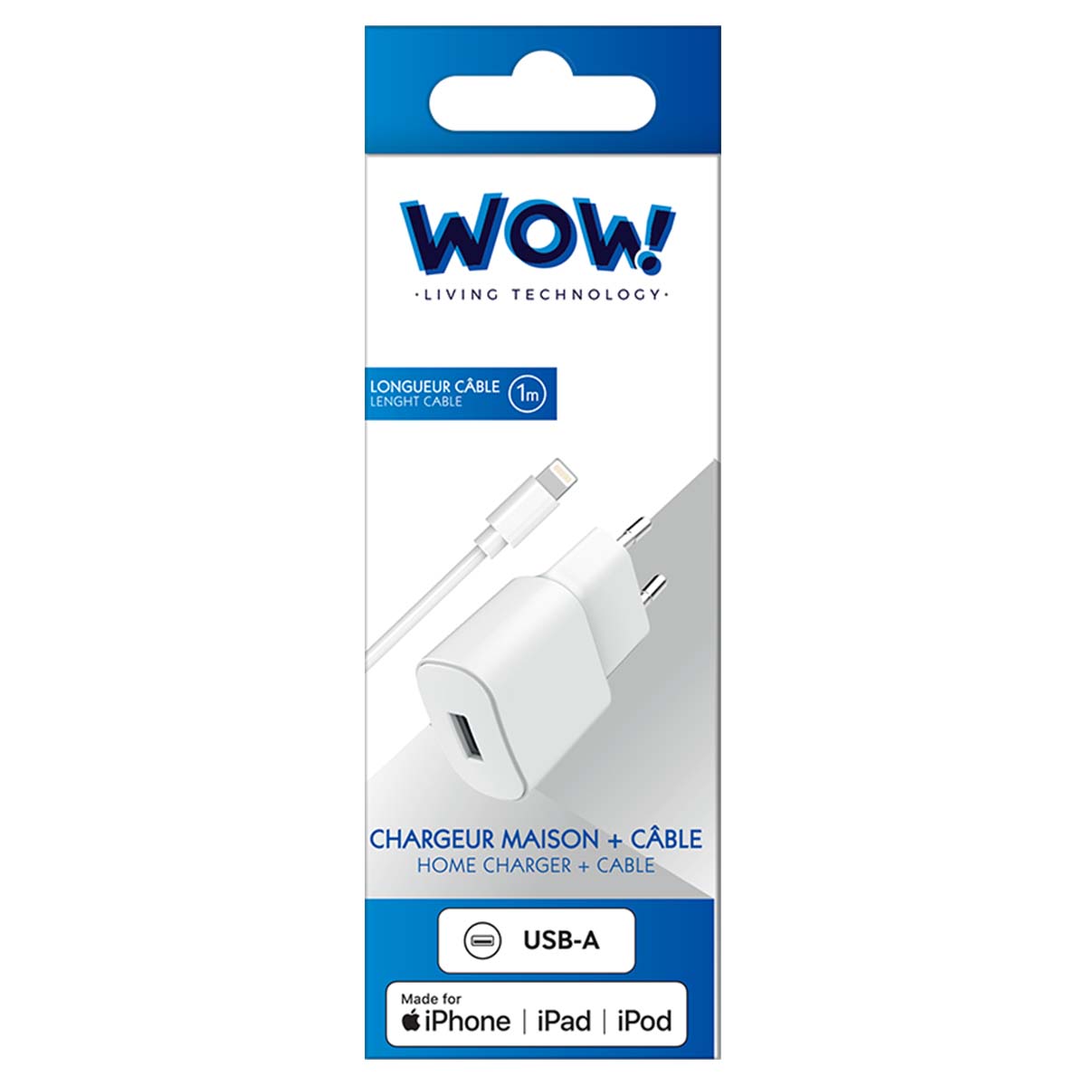 USB A 2.4A verkkolaturi FastCharge + USB A/Lightning -kaapeli