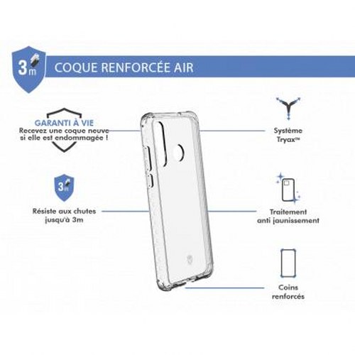Tämä vahvistettu kotelo Huawei P30 Lite AIR -puhelimelle on erittäin kestävä suojaava lisävaruste älypuhelimellesi. Siinä on tyylikäs läpinäkyvä viimeistely ja mukautettu vahvistettu muotoilu, joka kestää iskuja ja pudotuksia 2 metristä. Kuori on valmistettu muovista ylimääräisen kestävyyden takaamiseksi.