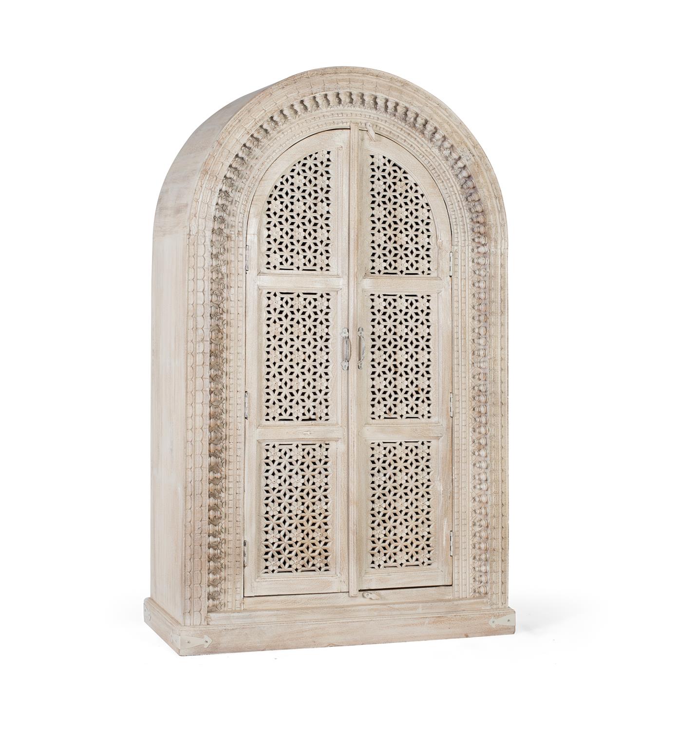Valkoinen kulunut mangopuusta valmistettu vaatekaappi