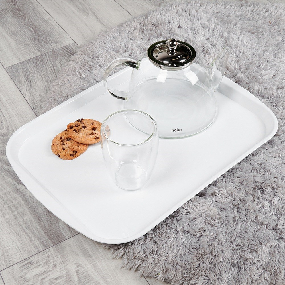 Suorakulmainen tarjoilualusta - Suorakulmainen tarjoilualusta ruoan ja välipalojen tarjoiluun. Voit helposti kuljettaa sillä myös kahvia, teetä, kotitekoista kakkua tai pientä jälkiruokaa. Tarjotin on erittäin toimiva ja sen kokonaismitat ovat 43,5 x 31,5 x 2 cm.