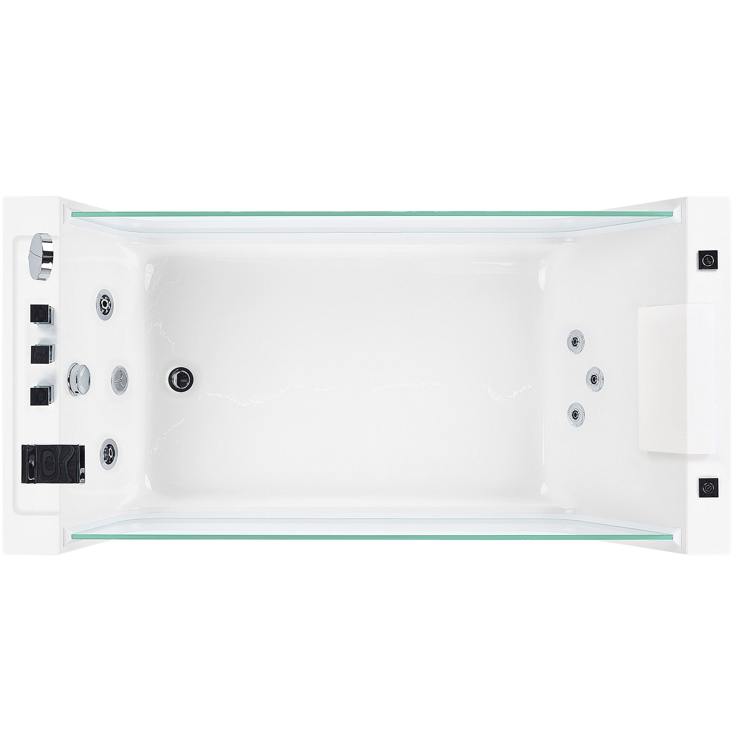 Ominaisuudet: Viemärijärjestelmä ylivuotosäädöllä, Vesisuihkut, jotka tarjoavat hellän hieronnan, Sisältää yhteensopivan hanan, Mukava niskatuki, Karkaistu lasipaneeli, Loistava paikka rentoutua, Ylellinen muotoilu