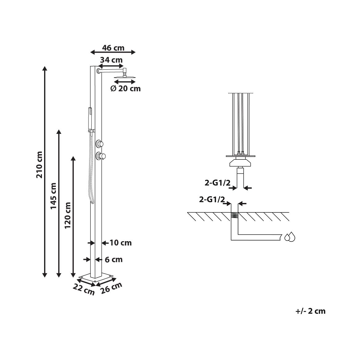 Moderni pihasuihku käsisuihkulla. Koe ulkoilman ylellisyys ja virkistä aisteja sekä kehoa kuumina kesäpäivinä tällä vapaasti seisovalla ulkosuihkulla. Kestävistä materiaaleista valmistetun suihkun harjattu viimeistely luo hienostuneen ilmeen, korostaen pihasuihkun upeaa muotoilua. Sormenjälkiä ehkäisevän pinnoitteen ansiosta se pysyy tahrattomana ja puhtaana ei-toivotuista jäljistä. Lisäksi suihkussa on ohjainventtiili, joka vaihtaa saumattomasti rauhoittavan sadesuihkun ja kätevän käsisuihkun välillä. Suihkusekoittaja mahdollistaa vaivattoman vesivirran voimakkuuden ja lämpötilan säätämisen tarpeita vastaavaksi.
