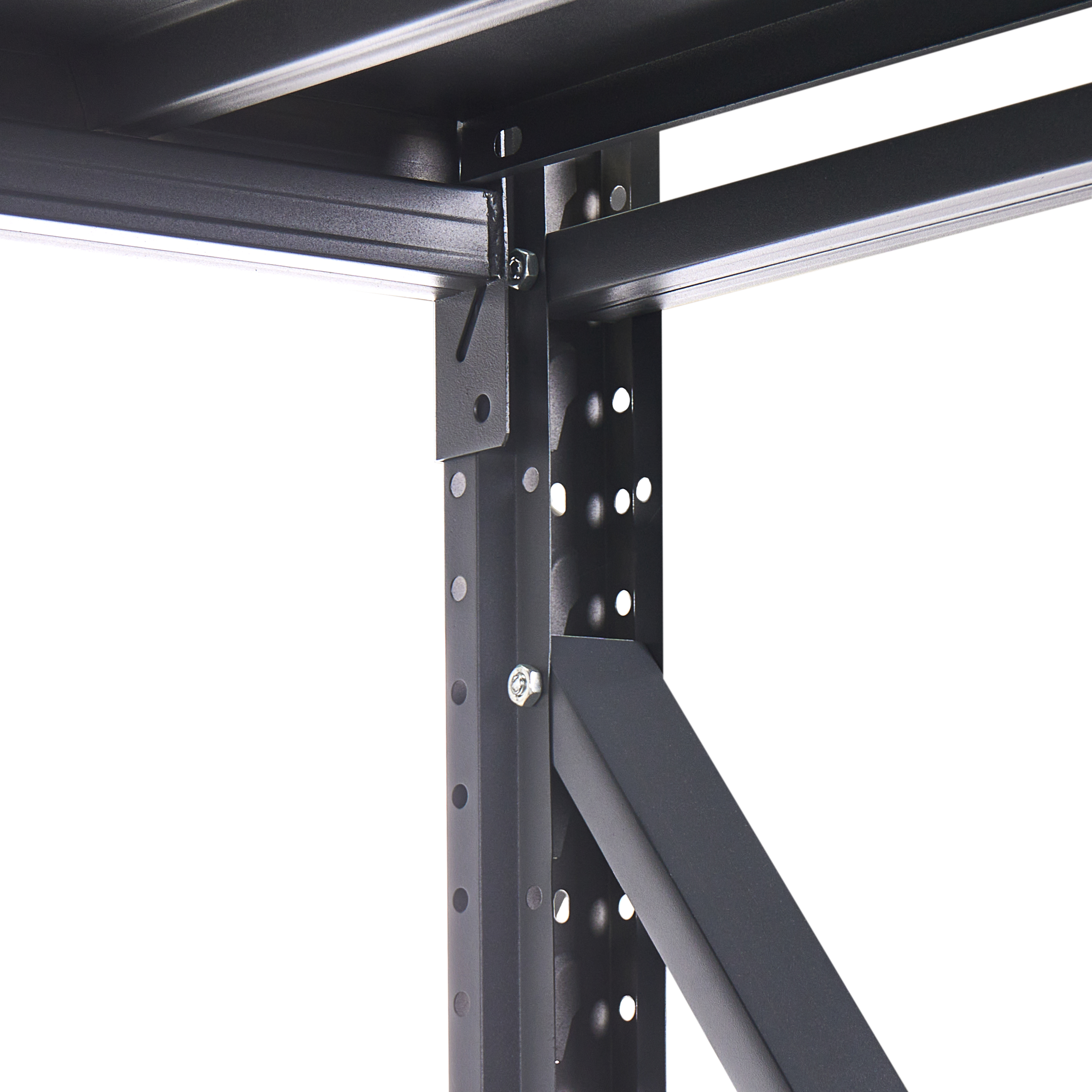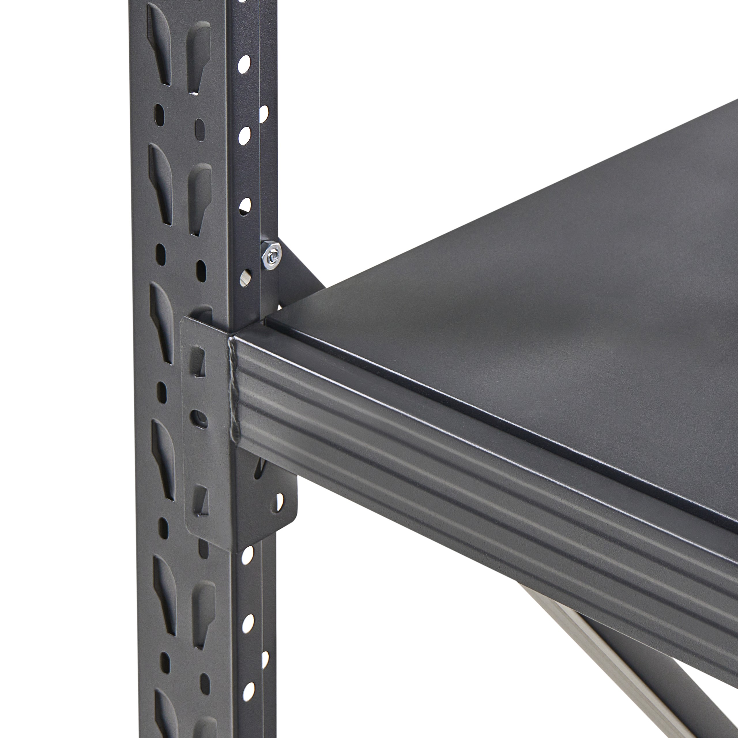 Moderni nelitasoinen hylly autotalliin tai varastoon. Tämä laadukkaasta ja kestävästä kylmävalssatusta teräksestä valmistettu varastohylly on poikkeuksellisen tukeva ja pitkäikäinen. Kylmävalssaus tiivistää teräksen pintarakennetta ja tekee siitä sileän, antaen hyllylle tyylikkään pinnan sekä erinomaisen taivutus- ja kulutuskestävyyden. Se kestää painavampiakin esineitä ja on tilava, joten se sopii erinomaisesti kaikenlaisten työkalujen, laatikoiden ja muiden tarvikkeiden säilytykseen ja auttaa maksimoimaan tilan autotallissa, työpajassa tai kodinhoitohuoneessa. Käytännöllinen, avoin muotoilu pitää kaiken helposti saatavilla ja ylläpitää siistiä ja järjestettyä ympäristöä. Lisäksi hylly on mahdollista yhdistää malliston muihin hyllyihin laajemman, tarpeisiin sopivan säilytysjärjestelmän luomiseksi.