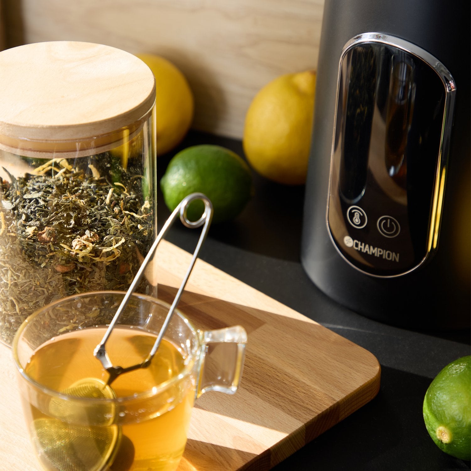 Tyylikäs mattamusta digitaalinen lämpötilankeitin säätelee tarkasti veden lämpötilaa, joten se on ihanteellinen teenharrastajille, perheille tai ravintoloihin. Vedenkeittimen näytön avulla voit helposti valita haluamasi lämpötilan kuudesta asetuksesta 45 - 100 celsiusastetta. Viisi näistä asetuksista sisältää lämpimänäpitotoiminnon (45-90 astetta) kahden tunnin ajan. Näyttö näyttää myös nykyisen veden lämpötilan, mikä varmistaa, että voit sammuttaa sen juuri halutussa lämpötilassa. Sen tilavuus on 1,7 litraa, ja siinä on kuivumissuoja ja automaattinen sammutus maksimaalisen turvallisuuden takaamiseksi. Sen kaksikerroksinen rakenne tarjoaa paremman eristyksen ja viileän ulkonäön.