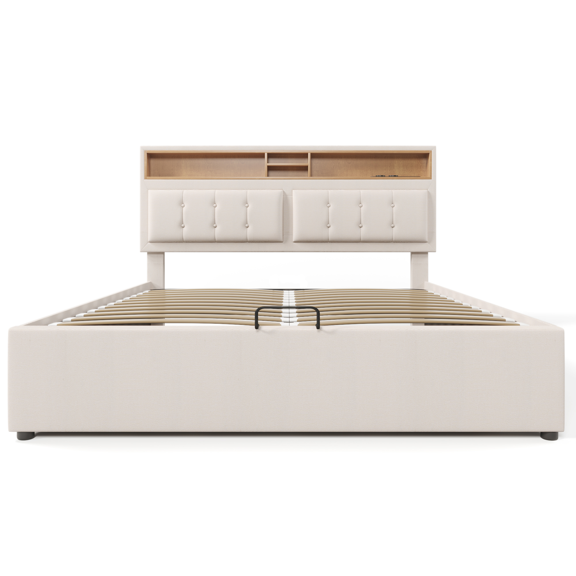Verhoiltu parisänky, 160x200cm, USB C -latauspääty ja säilytystila, pellava