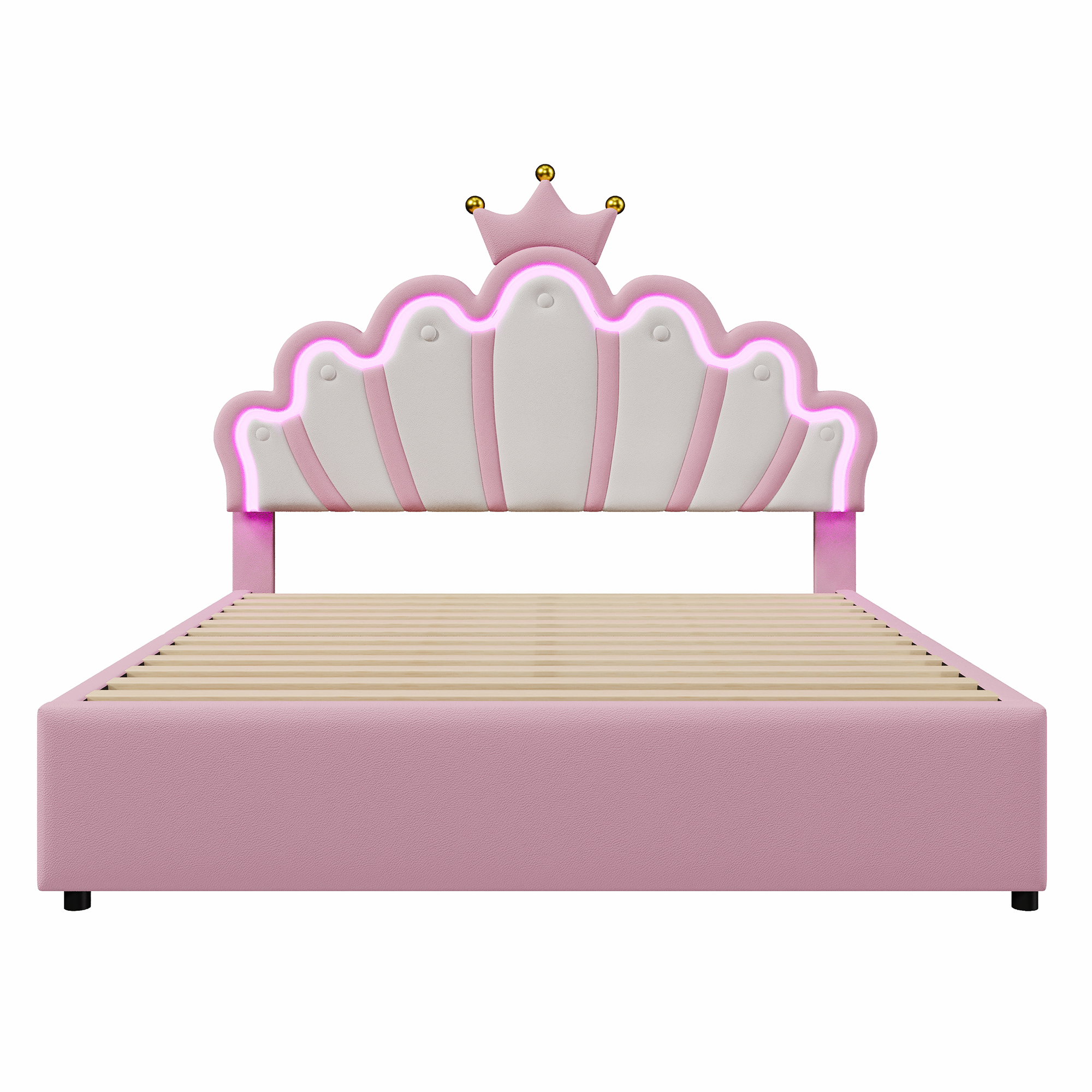 Verhoiltu sänky 140 x 200 cm, parisänky kahdella laatikolla, kruununmuotoinen prinsessasänky, PU, pinkki
