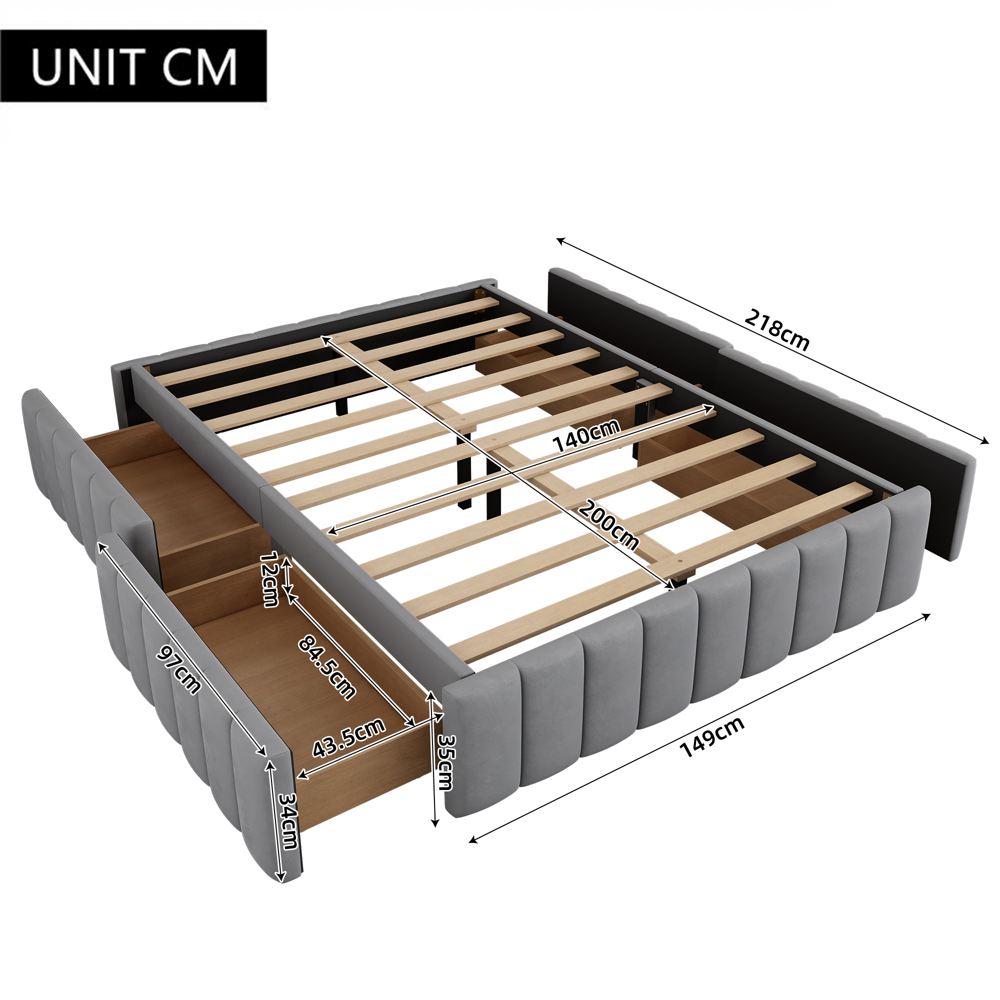 Runsaasti säilytystilaa: Säilytystarpeet huomioon ottaen suunnitellussa sängyssä on neljä laatikkoa sivuilla ja lisätilaa alla.