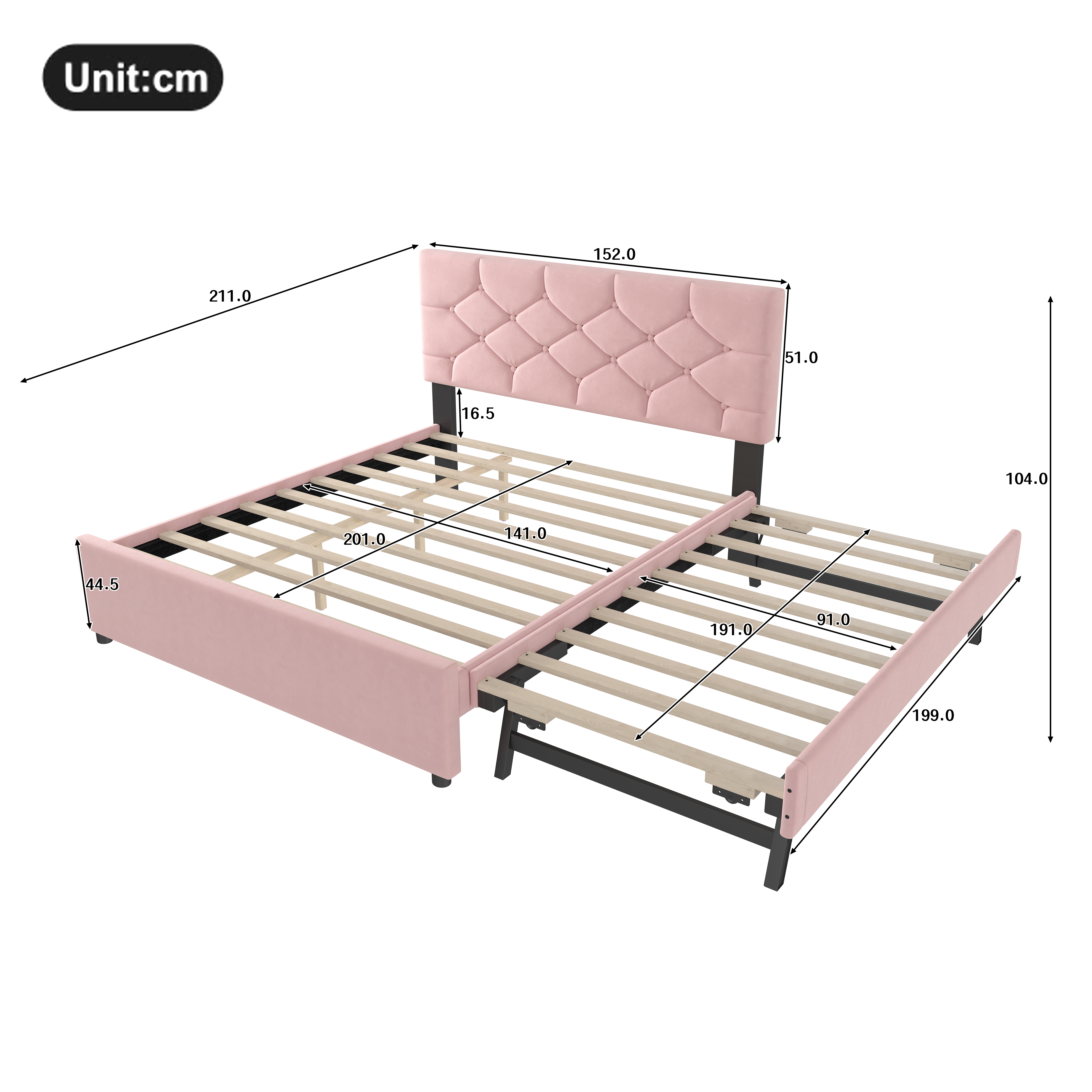 Verhoiltu sänky 140x200 cm, sälepohjalla ja pyörillä varustetulla säilytyskalusteella, pinkki