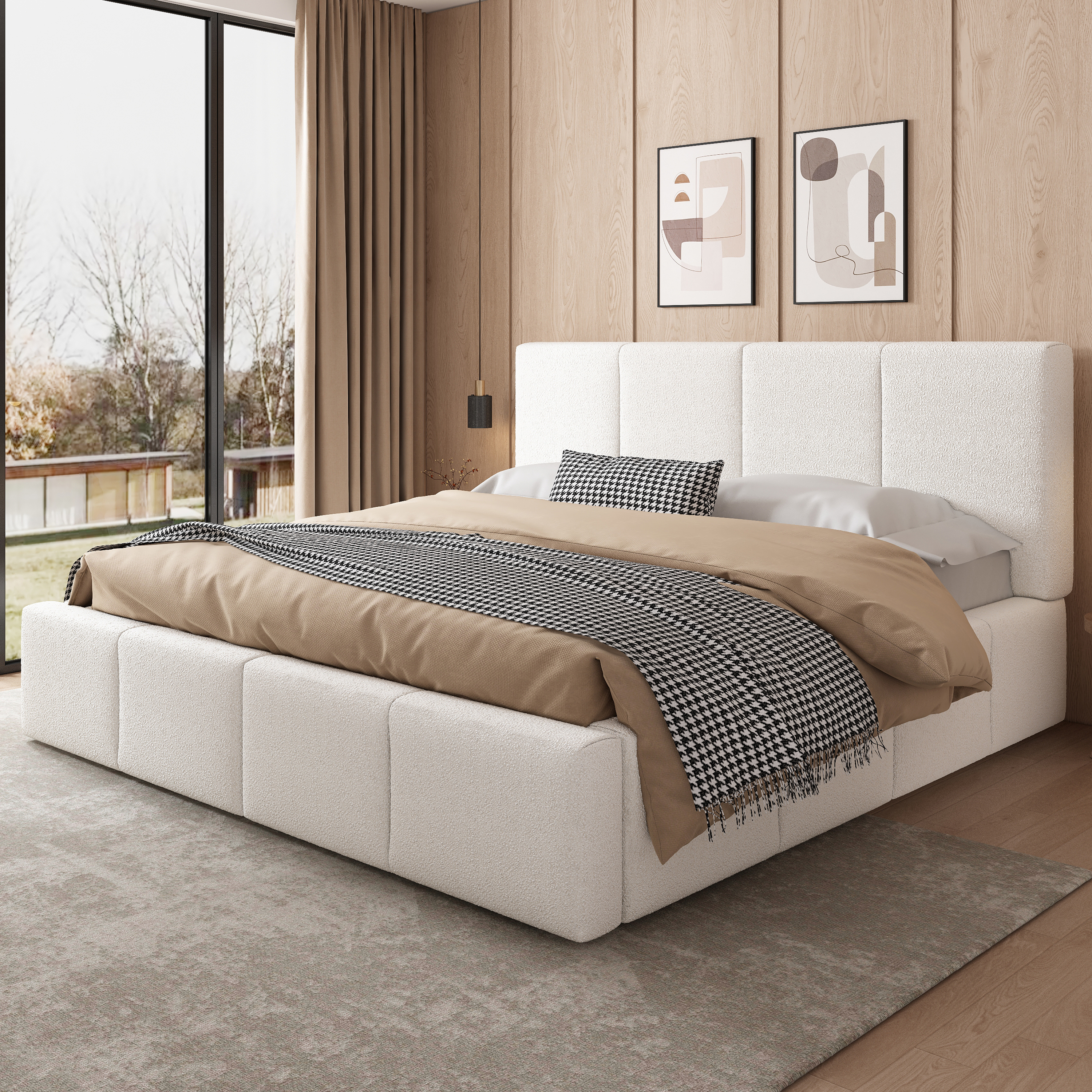 Verhoiltu sänky 180 x 200 cm, parisänky säilytystilalla, toiminnallinen sänky, beige