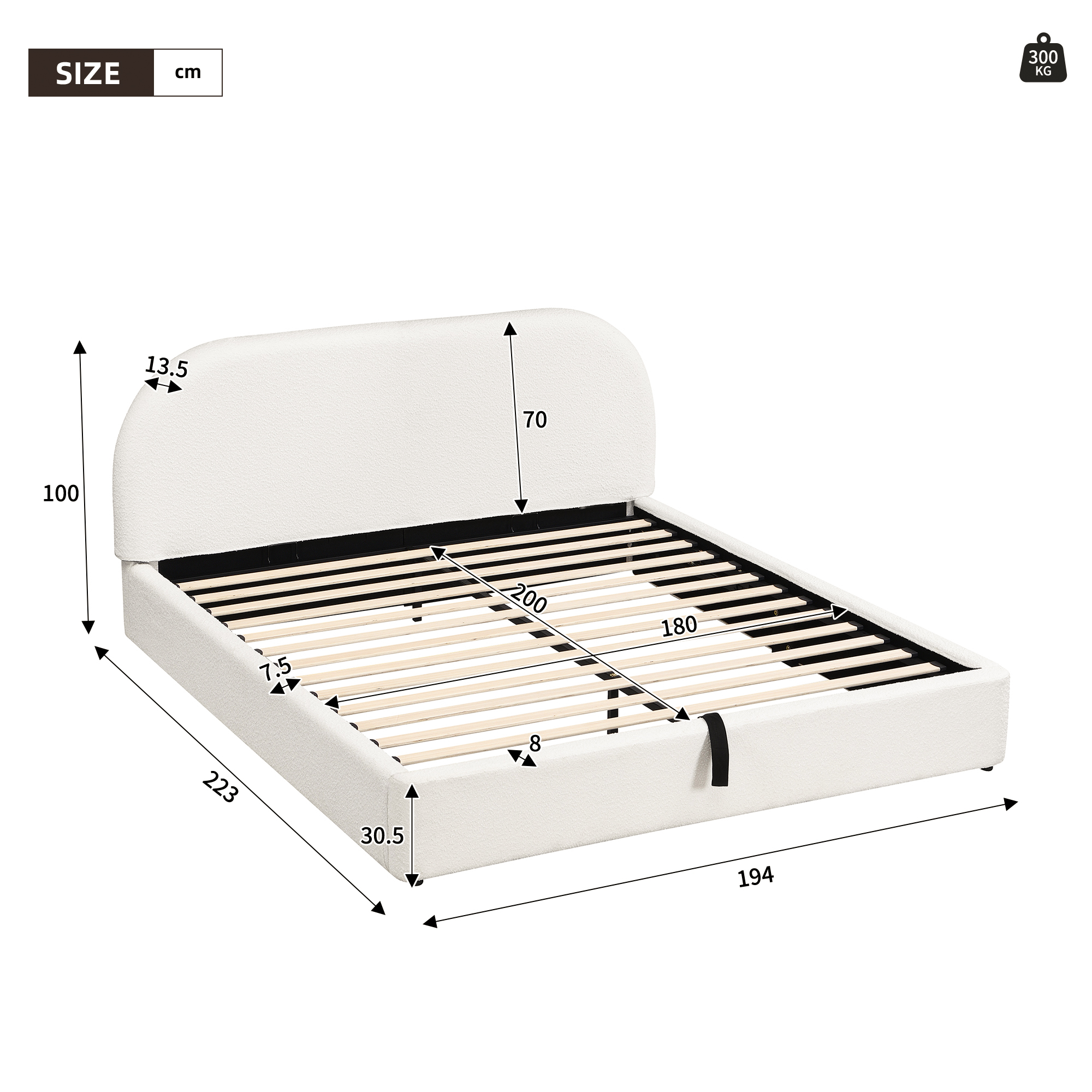 Verhoiltu sänky 180 x 200 cm, parisänky säilytystilalla, verhoiltu sängynpääty, beige