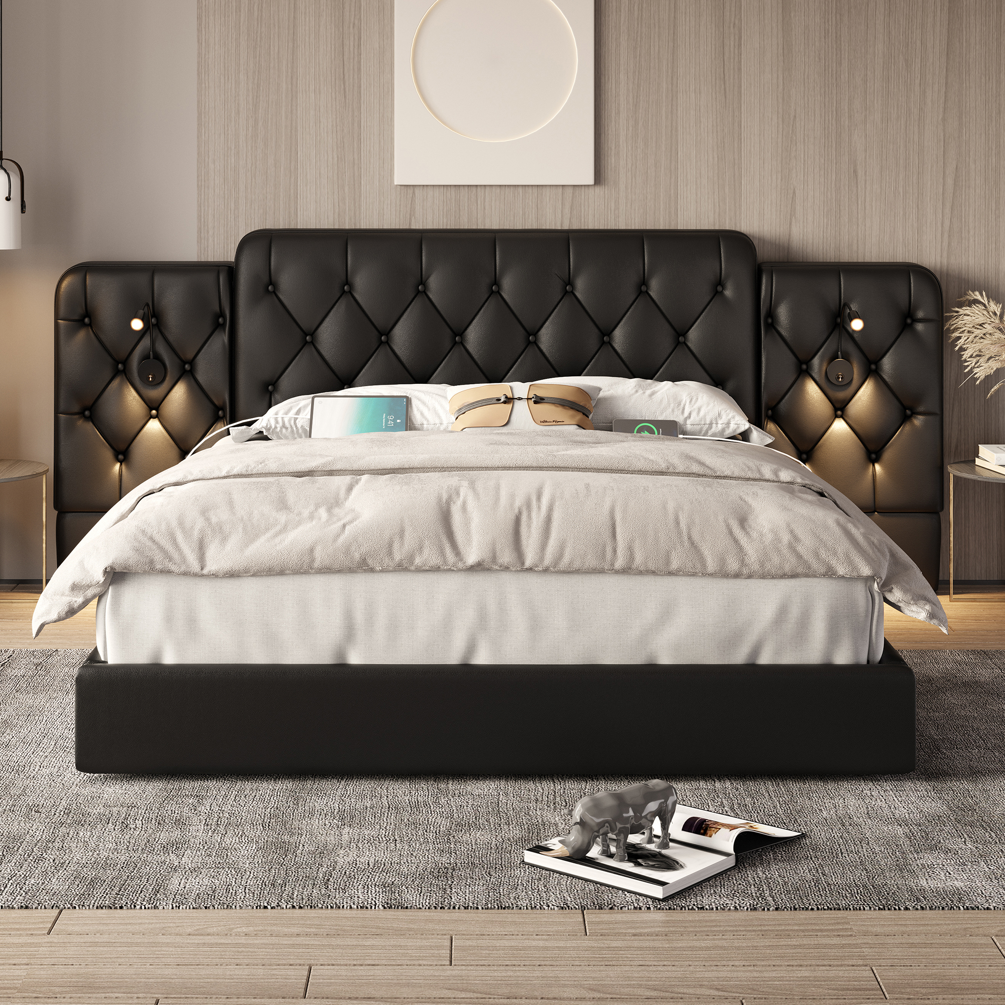 Lukuvalojen muotoilu, mukavampi ja kodikkaampi: Lukuvalot on kiinnitetty sängynpäädyn molemmille puolille valaistus- ja lukutarpeitasi varten yöllä.