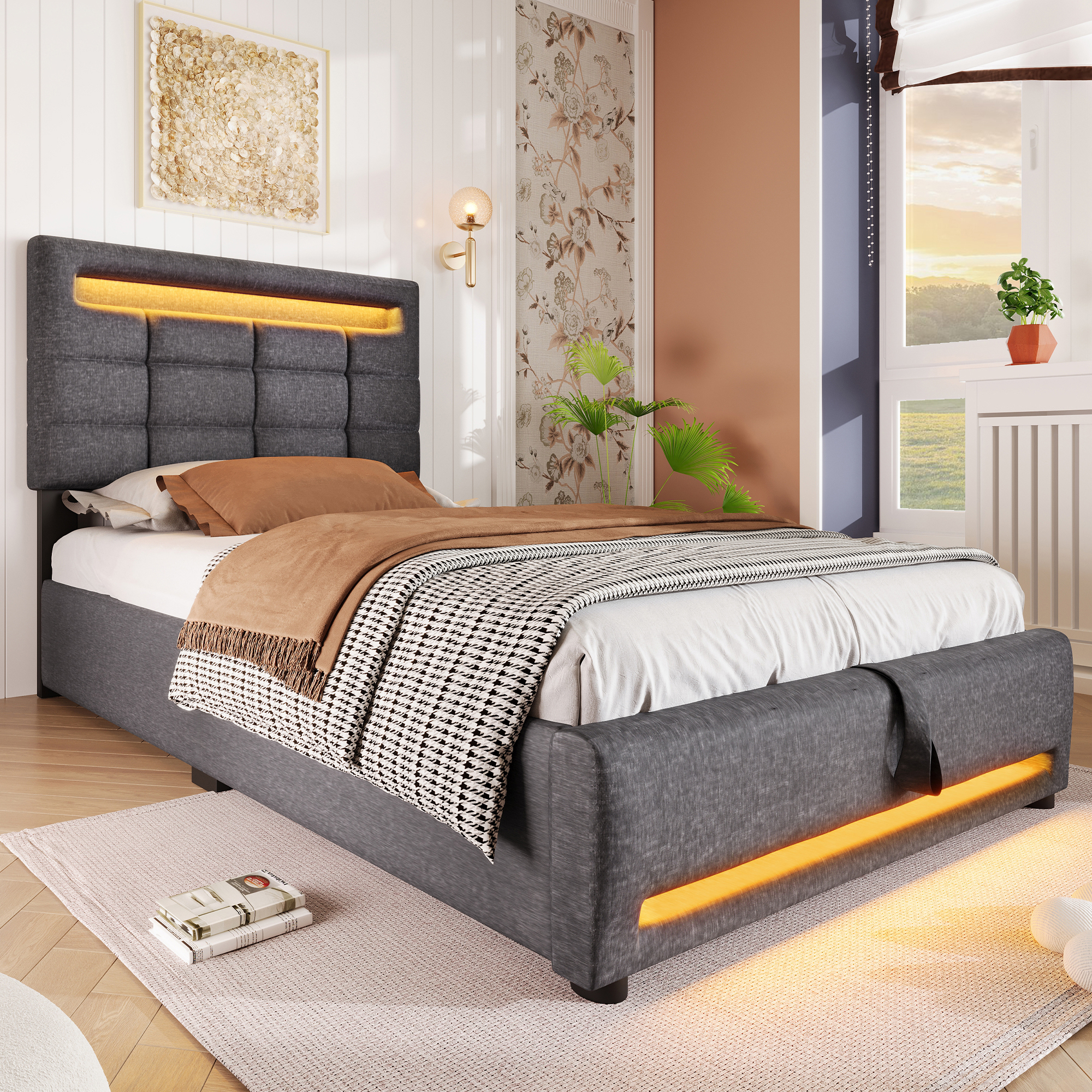Älykäs 16-värisen valaistuksen ohjaus värikkään tunnelman luomiseksi: Helposti mobiilisovelluksen kautta ohjattavat sängynpäädyt ja jalkopäädyt on ympäröity valonauhalla, jonka avulla voit vaihtaa värejä haluamallasi tavalla ja lisätä loputtomasti tyyliä yöhön.